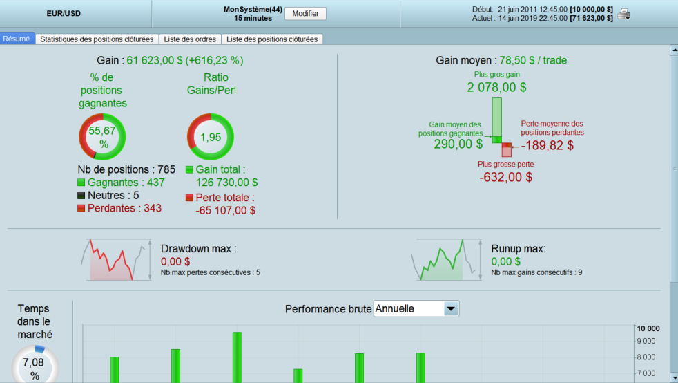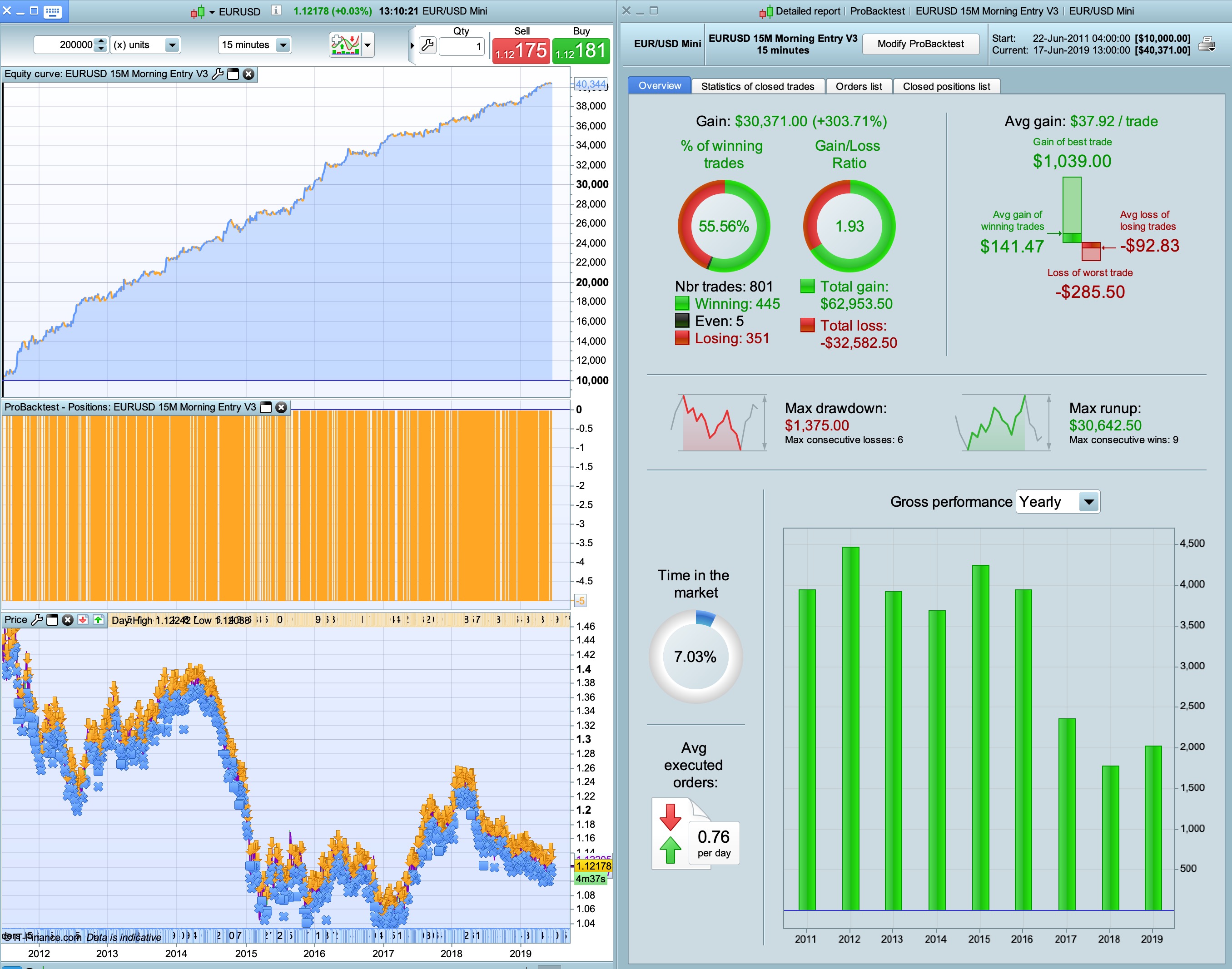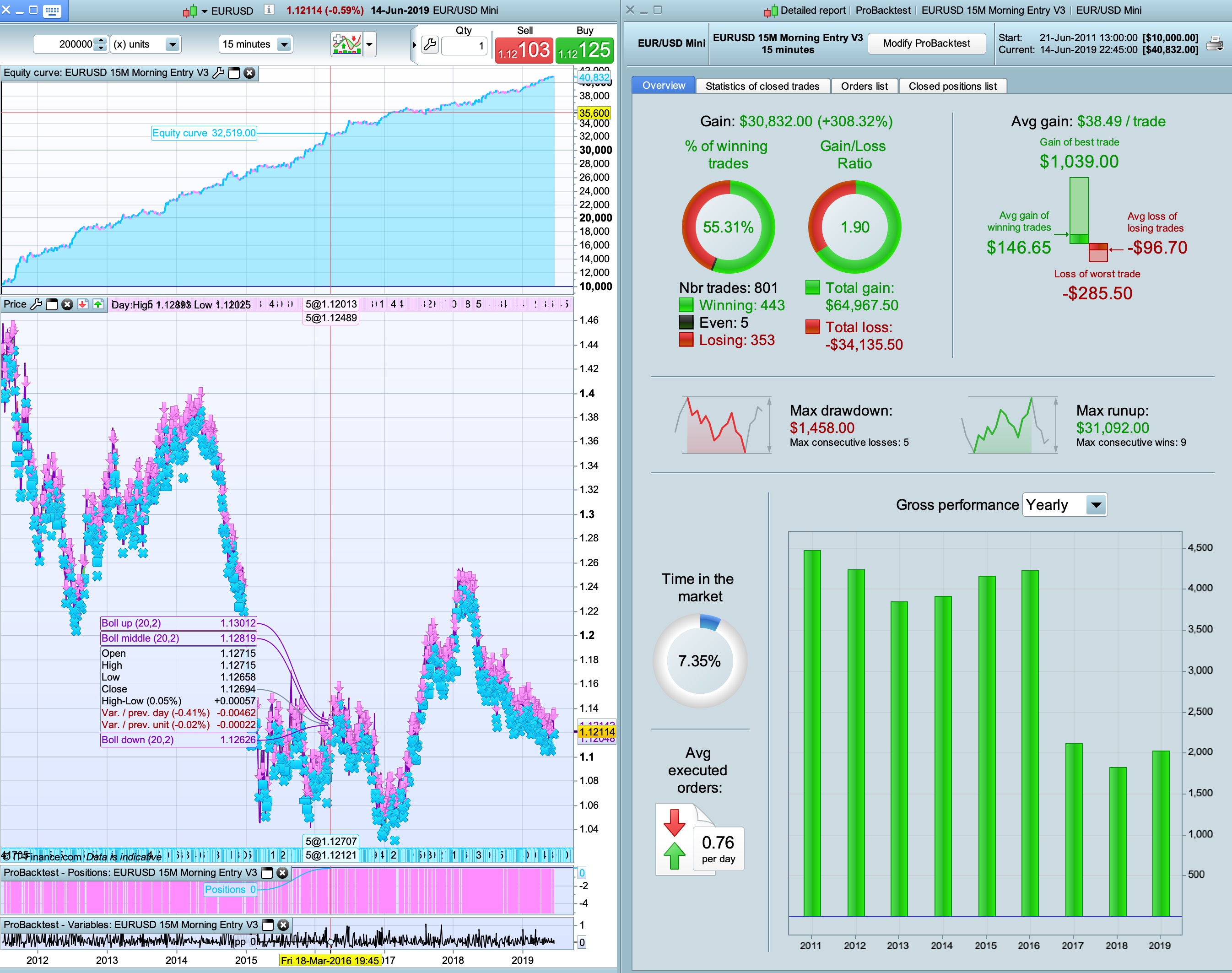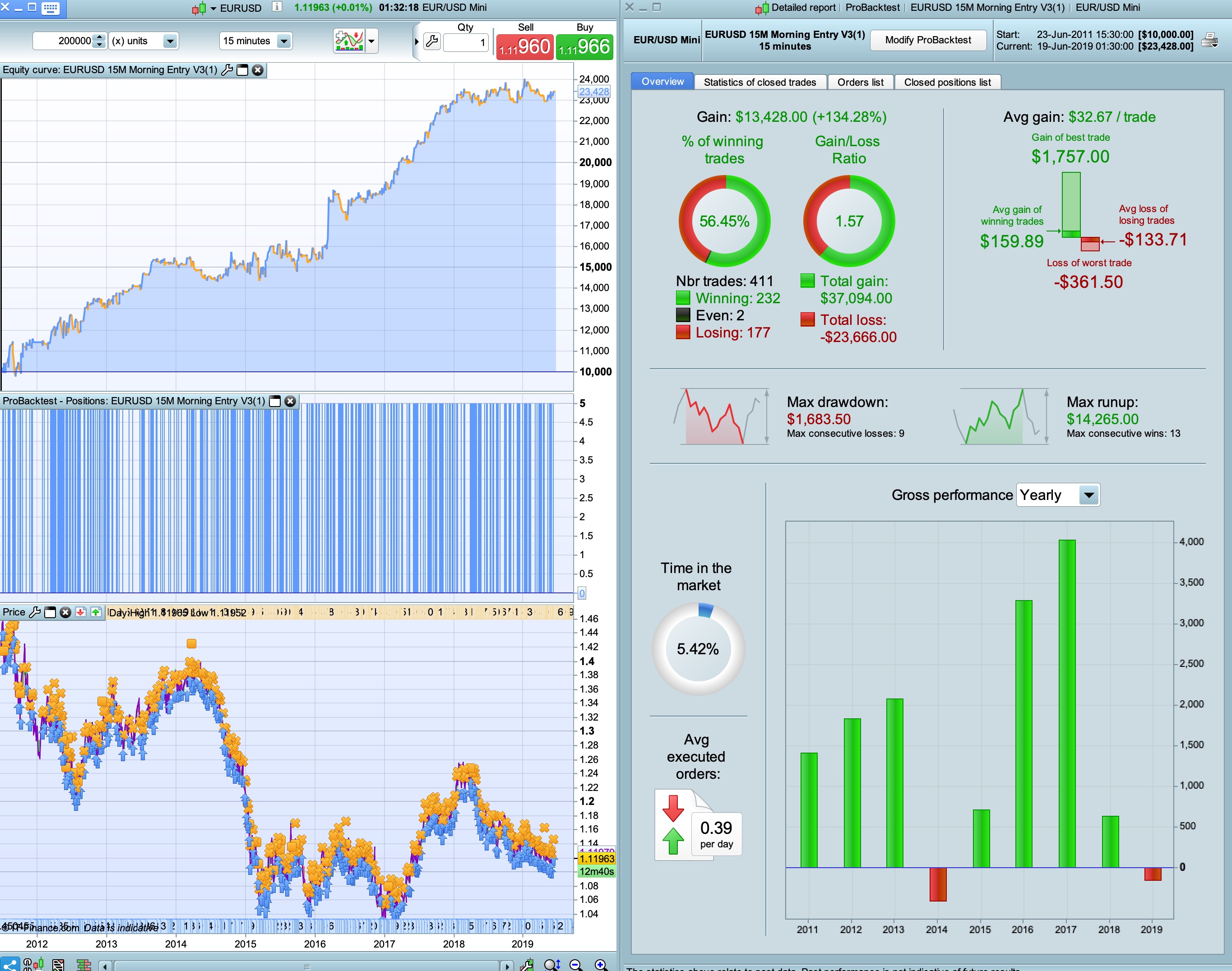 – Shorts are performant because since 2008 EURUSD is in a long bearish tendency. Strategy is less performant in bullish trends like in 2017.