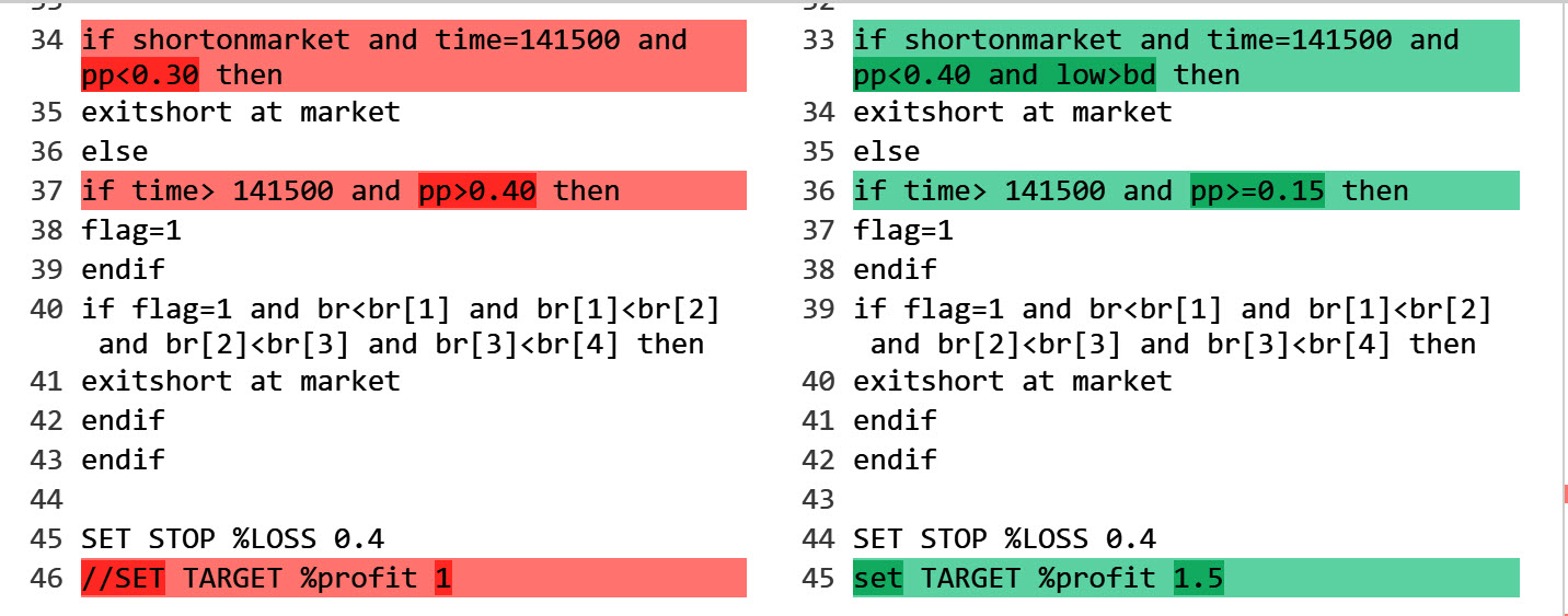 I modify the Flatafter time to 180000 and the sellshort time condition < 124500 instead of 130000