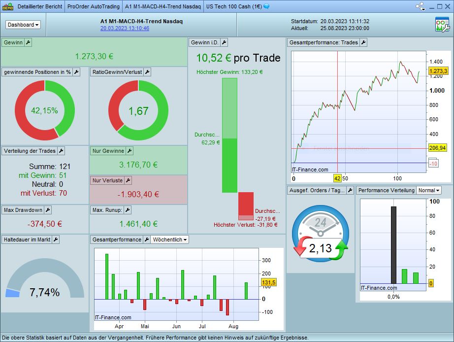 Voici la version originale. Fonctionne en compte démo depuis le 15/03/23. Pour une stratégie M1 inchangée avec les moyens les plus simples, les performances pourraient être qualifiées de assez stables. Ou suis-je trop optimiste ?