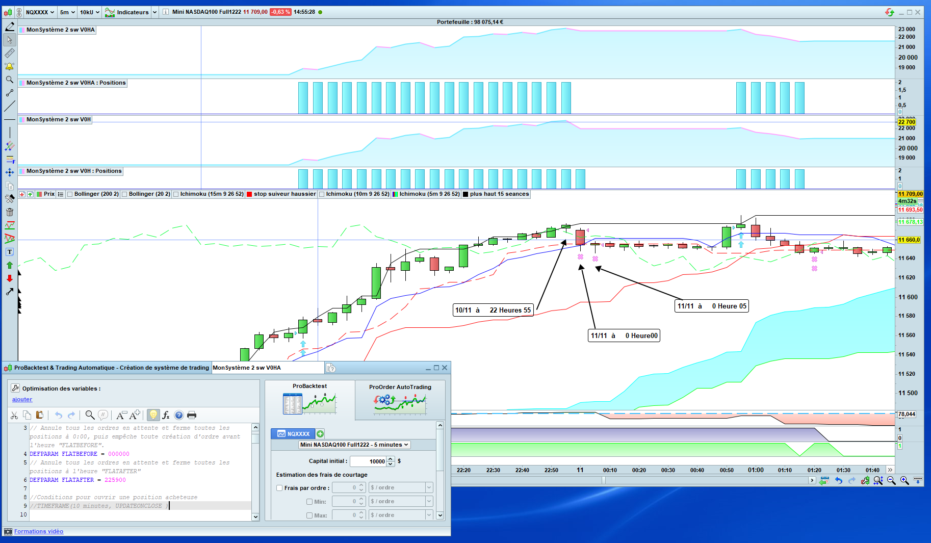 L’instrument est le mini Nasdaq. cet instrument (sauf erreur de ma part ) est coté de 0h00 jusqu’à 23h00