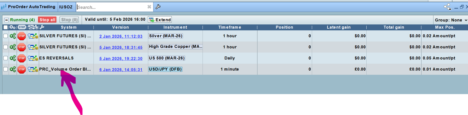 // PRC_Volume Order Blocks -> PROORDER AUTO STRATEGY (IG Spread Betting ES)