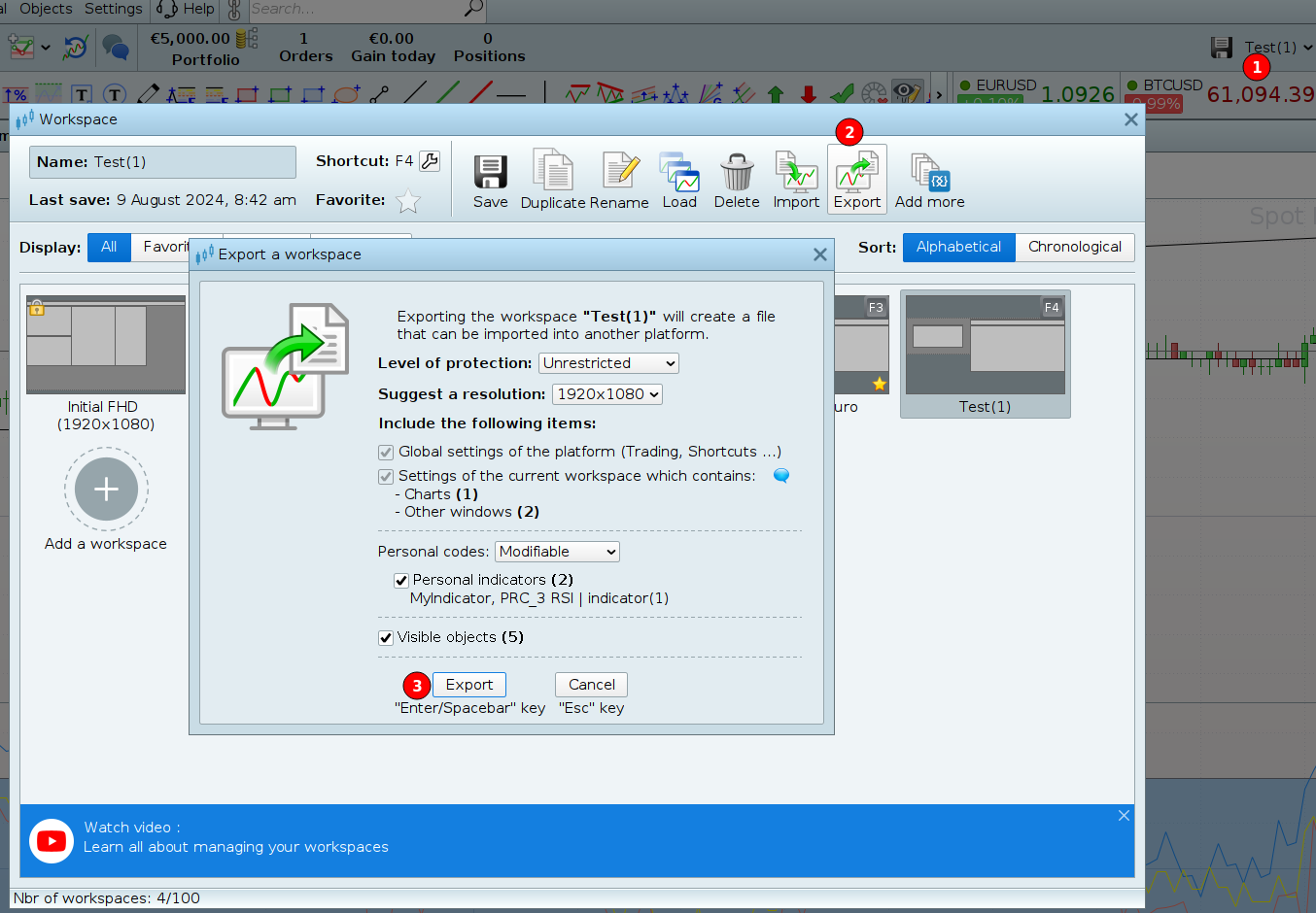 When i go to manage chart templates and try to export a chart template, i execute the command but no file is saved. I am able to export Workspace/template but it does not include my chart templates, only indicators etc.