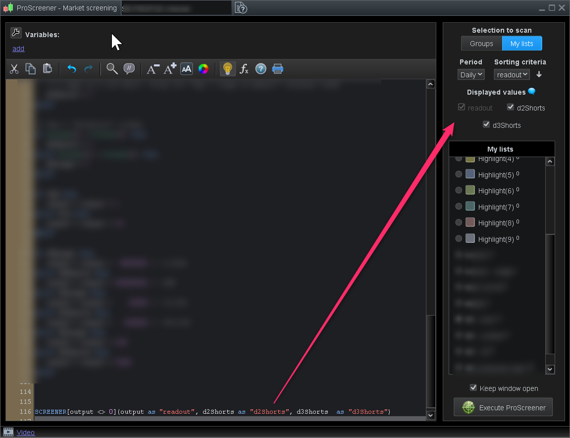 I would expect to see 3 columns in the Screener output window i.e. “readout”, “Prev DHigh” and “PrevDlow”, however I only see the column for “readout”.