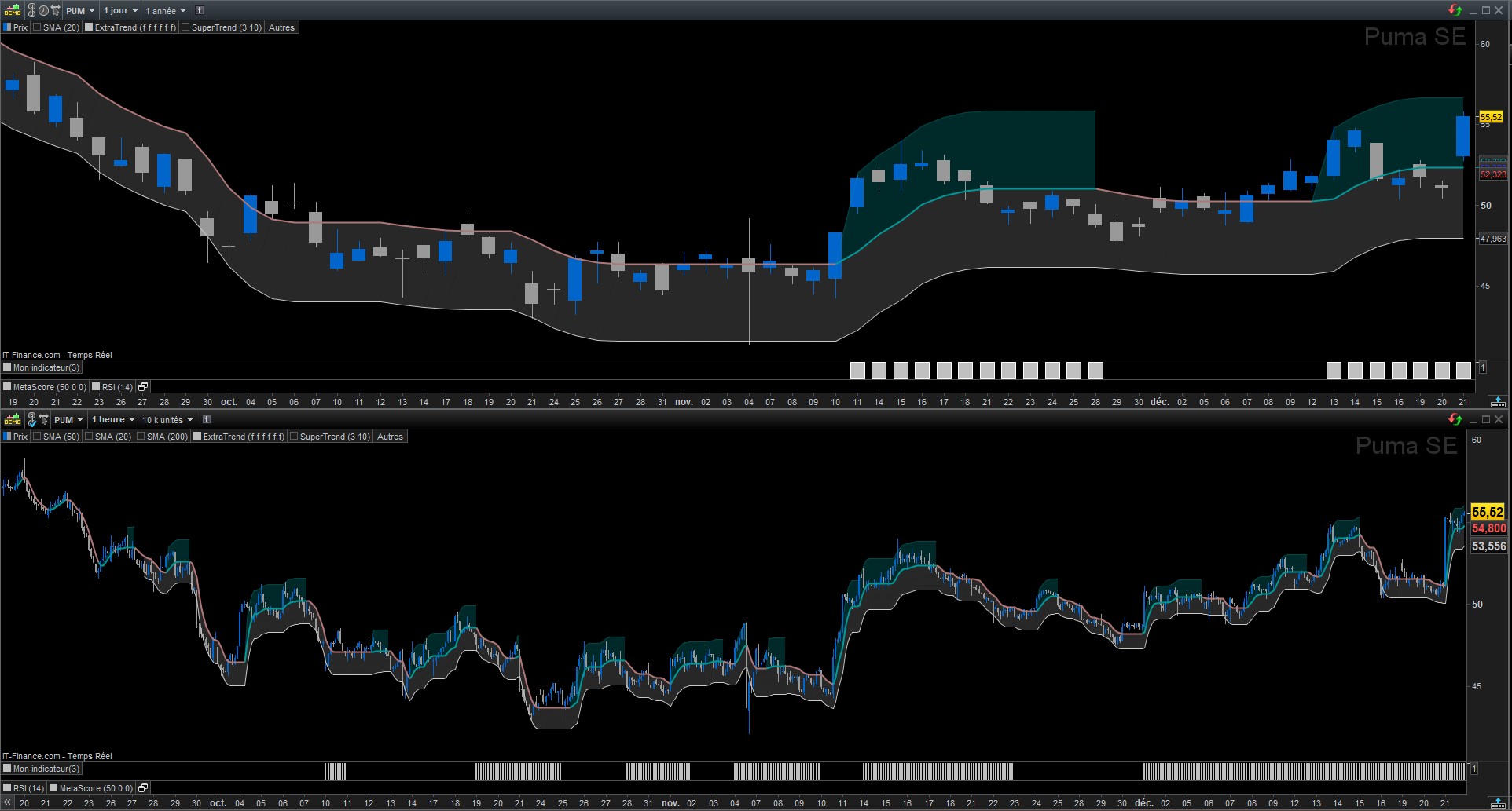 J’obtiens un résultat cohérent avec ExtraTrend sur un Graph Daily, mais un résultat décorréler d’ET sur un Graph 1H…