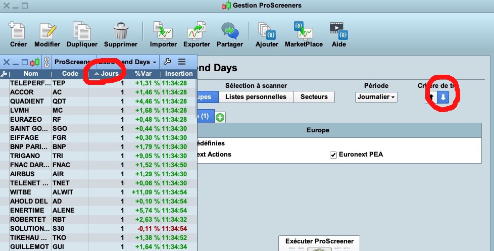 Voir capture, c’est lié à l’utilisation de Prorealtime. Tri croissant.