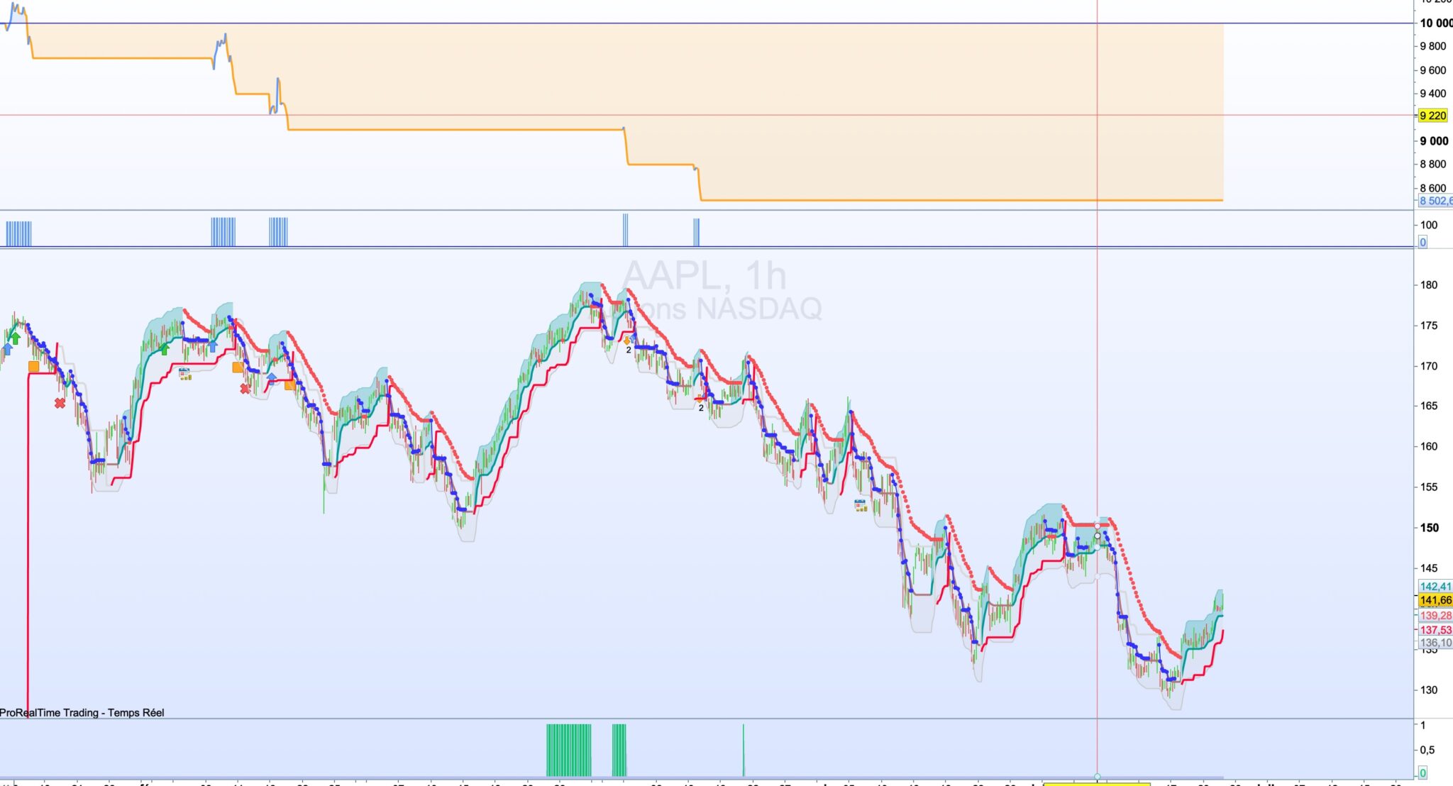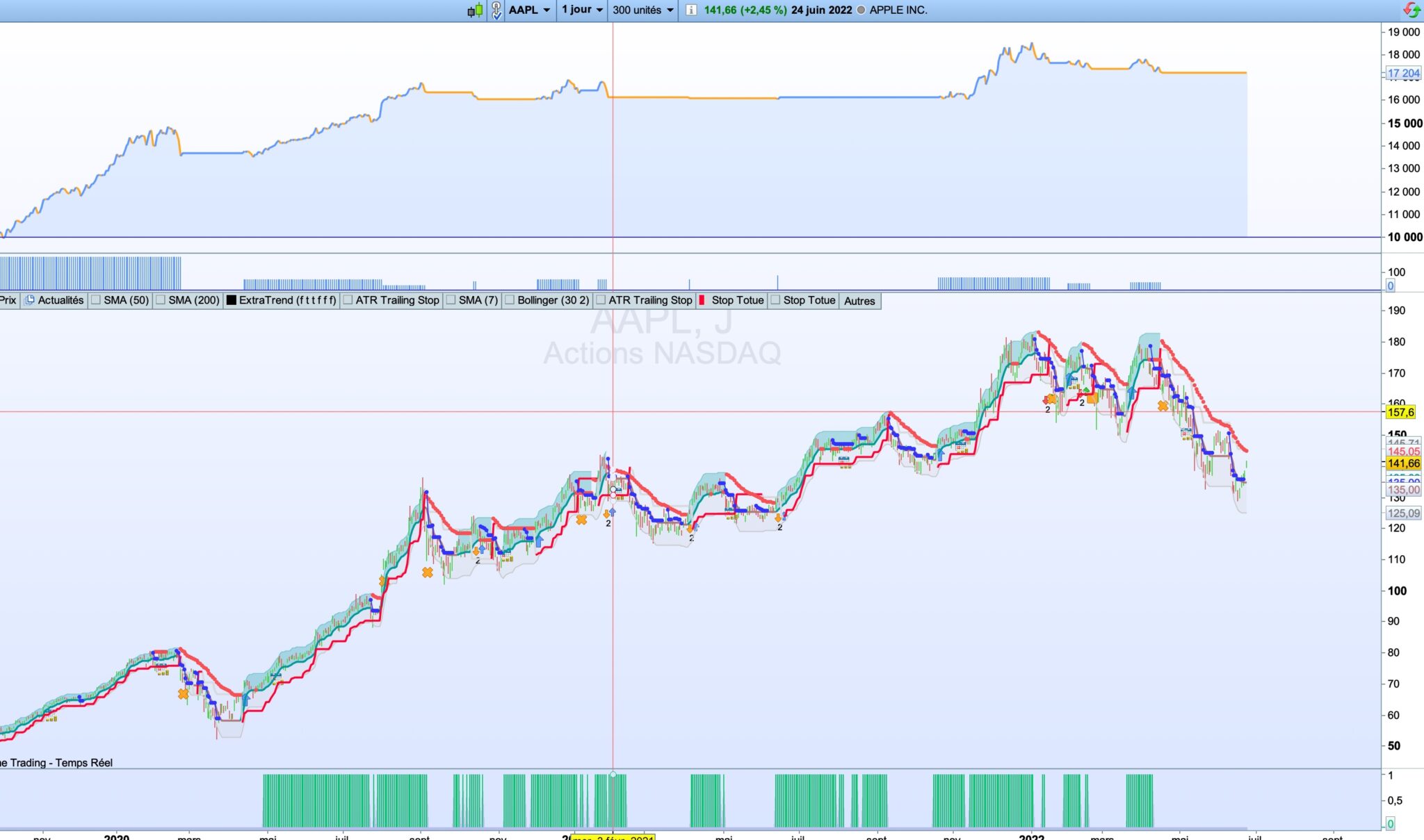 J’ai humblement essayé différentes stratégies avec Extratrend, et les résultats que j’obtiens sont radicalement différents d’un Timeframe à l’autre. De ce que j’ai compris ca marche mieux sur les UT longues genre daily, car les tendances sont plus claires, car logiquement beaucoup moins de faux signaux, de bruits, de gaps, etc… Ca devient beaucoup plus compliqué quand on descend les UT genre 15 min, la performance est anéantie par des titres en range pleins de faux signaux, et même en utilisant des gardes fous genre Metascore + multi timeframe pour être sûr d’être en tendance en Journalier & 1 heure, avant de prendre une position en 15 min quand metascore au-dessus de 90, les résultats sont peu convaincants, je vous partage ici le dernier code a ce sujet inspiré de ce qu’a proposé Christophe et d’autres participants de ce file ( que je remercie).