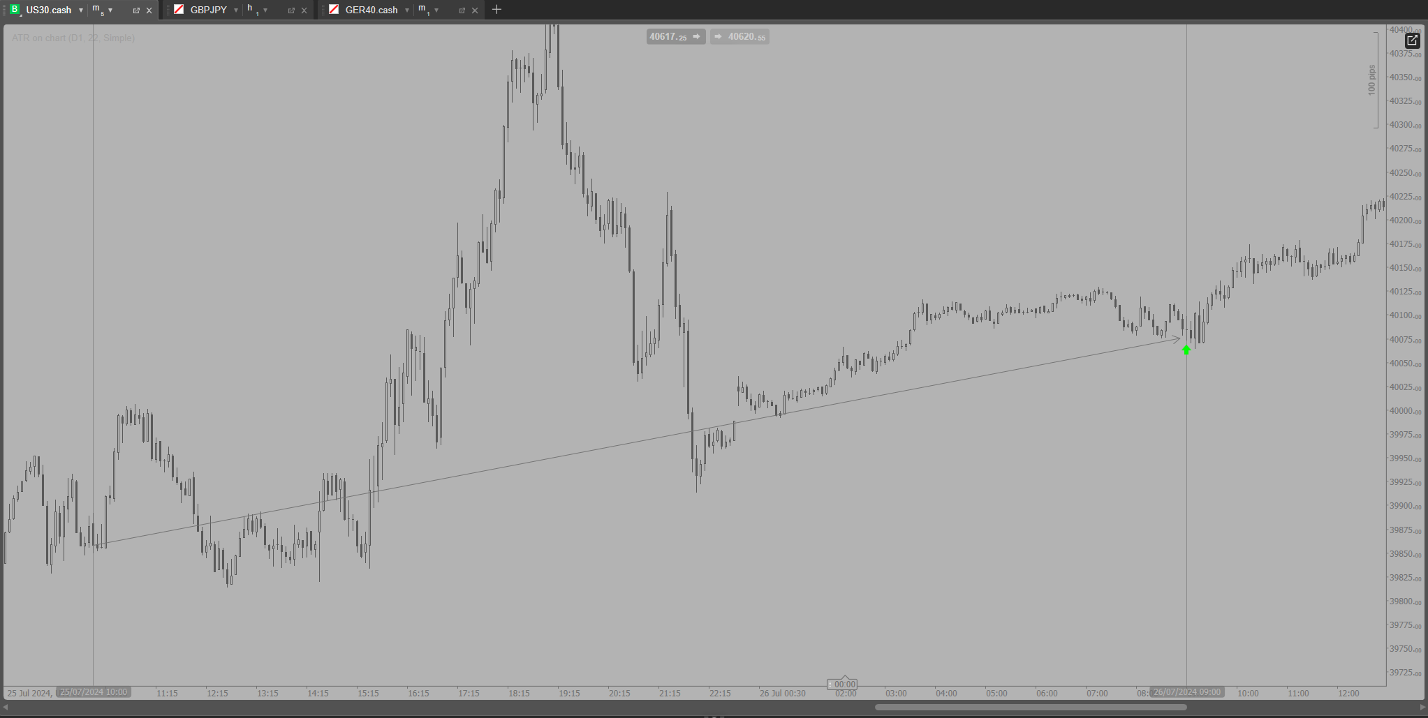 Le graphique en question doit être ouvert dans le laps de temps le plus bas (ici 1 minute)…
