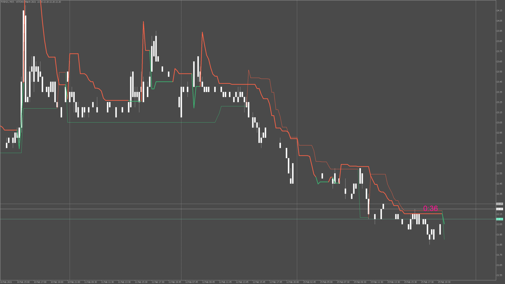 si, puoi considerarlo una conferma, il vstoxx si muove in direzione opposta e quindi se cambia colore del st anche dopo il FDax va bene lo stesso. Ti aiuta a stare dalla parte giusta del mercato, visto che il vstoxx misura la volatilità implicita delle opzioni sullo strumento a 30gg (la volatilità implicita è quella che ci si può aspettare diciamo). nel caso inserisci uno screenshot del tuo desktop e controlliamo se hai un setup corretto.