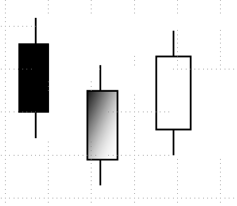 Tag1: Kerze ist weiß, Close > Open, hat aber höheres Tief und höheres Hoch als Tag2
