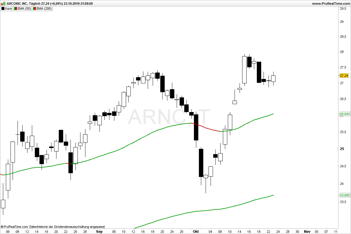 In Ihrem Code ist keine Bedingung geprüft, deshalb gibt ProScreener alle Freigaben der Liste zurück! Ein weiteres Problem ist die Verwendung des exponentiellen gleitenden Durchschnitts. Die verwendete Periode ist für ProScreener zu groß, da 200 Perioden mehr als 254 Balken für die Berechnung verwenden. Mit ProScreener funktioniert dies nicht, da die Datenhistorie auf 254 Balken begrenzt ist. Ich würde empfehlen, stattdessen Simple Moving Average zu verwenden.