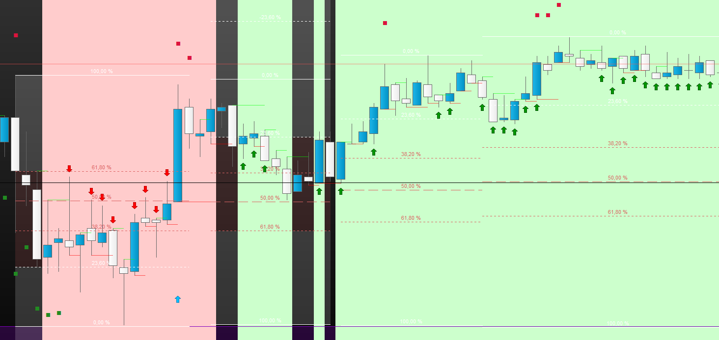 J’ai mis un indicateur de changement de tendance court terme, au moment du switch j’aimerais que le fibo detect automatiquement les précédents plus haut et plus bas.