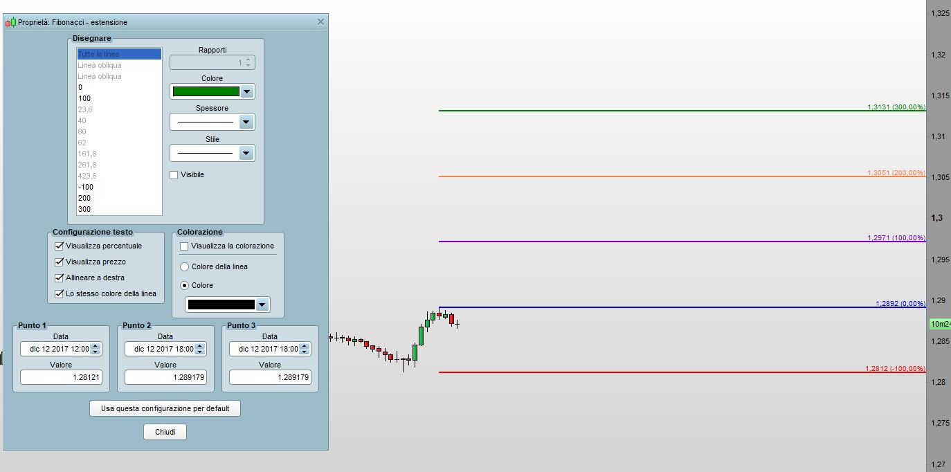 Ciao a tutti, volevo chiedere se fosse possibile avere un indicatore di fibonacci che misura e calcola l’R:R, provo a spiegarmi meglio: Voglio che mi calcoli da un punto di entrata a uno stop loss il R:R a seguire 1:2 1:3 1:4 ecc…. i(linee rosse che mi vengono disegnate in automatico). Metto il buy limit sulla linea nera e lo stop sulla blu, in modo da sapere che se entro a tot e lo stop lo metto a x devo avere almeno un target di x1 x2 x3