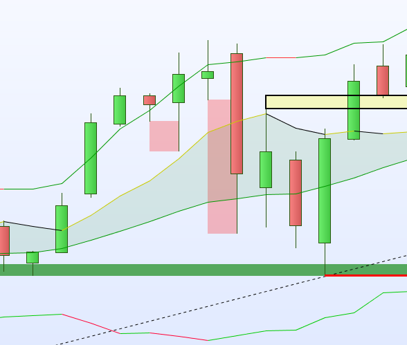 – If the top of a daily candle is higher than a bollinger band and then the price drops below the bottom of the previous daily candle, algos should not take any more purchases as long as :