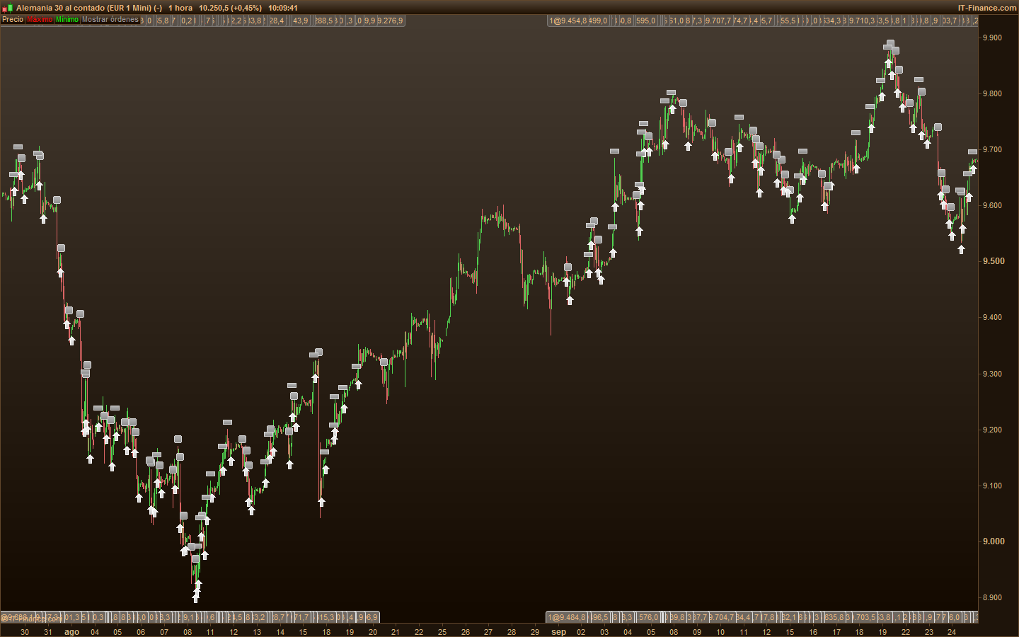 Estoy desarrollando un sistema en gráficos 1H y funciona bien hasta que llegan las fuertes bajadas. Para pausar mi sistema quiero que tengan en cuenta el momentum del grafico semanal. Por debajo de 70 (momentum semanal) pausar/parar sistema de 1H.