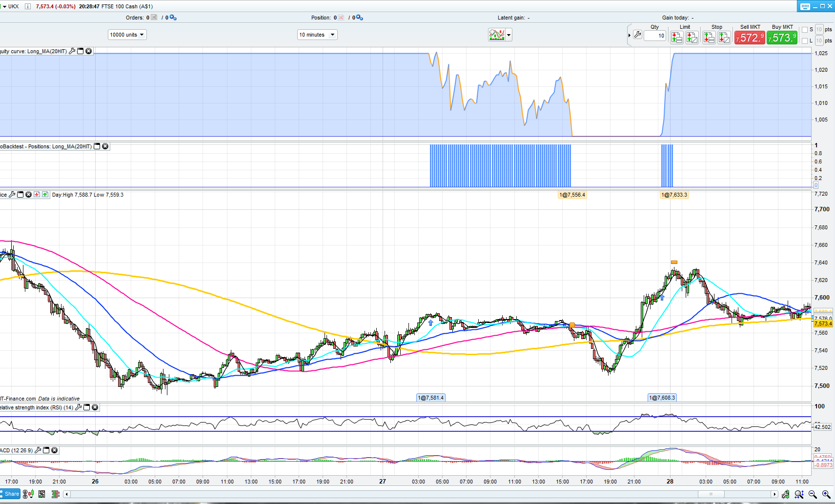 When I run it on UKX (10 minute chart) it seems to buy when the 20MA is above the 200MA by the gapneeded.