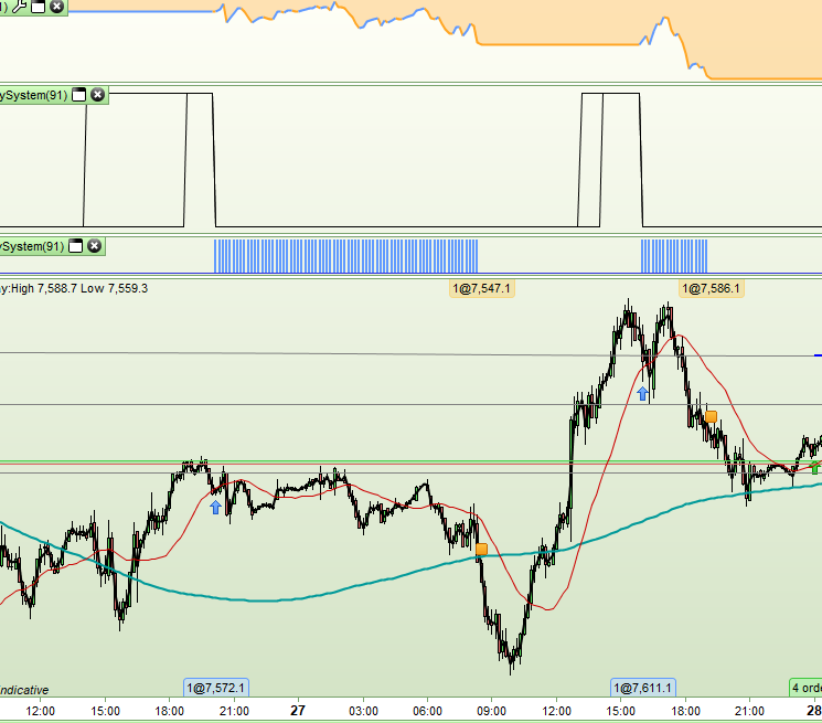 1234567891011121314151617181920212223242526272829303132333435363738394041424344// Definition of code parametersDEFPARAM CumulateOrders = False // Cumulating positions deactivatedstarttime = 000000startday = 1gapneeded = 20ma20 = average[20](close)ma200 = average[200](close)magap = ma20 - ma200if opentime = starttime and opendayofweek = startday thencrossflag = 0gapflag = 0endifif ma20 crosses over ma200 thencrossflag = 1endifif crossflag and magap > gapneeded thengapflag = 1endifif ma20 crosses under ma200 thencrossflag = 0gapflag = 0endifif crossflag and gapflag thenbuy at ma20 limitendif// Stops and targetsSET STOP pLOSS 25SET TARGET pPROFIT 25crossflag = 0gapflag = 0//if onmarket and (exit condition) then//sell at market//crossflag = 0//gapflag = 0//endif07/04/2018 at 8:17 AM #75188Please use the ‘Insert PRT Code’ button when putting code in your future posts to make it esier for everyone to read – I have tidied up your last post for you. 🙂