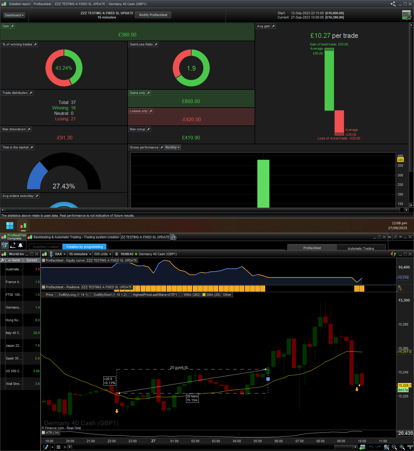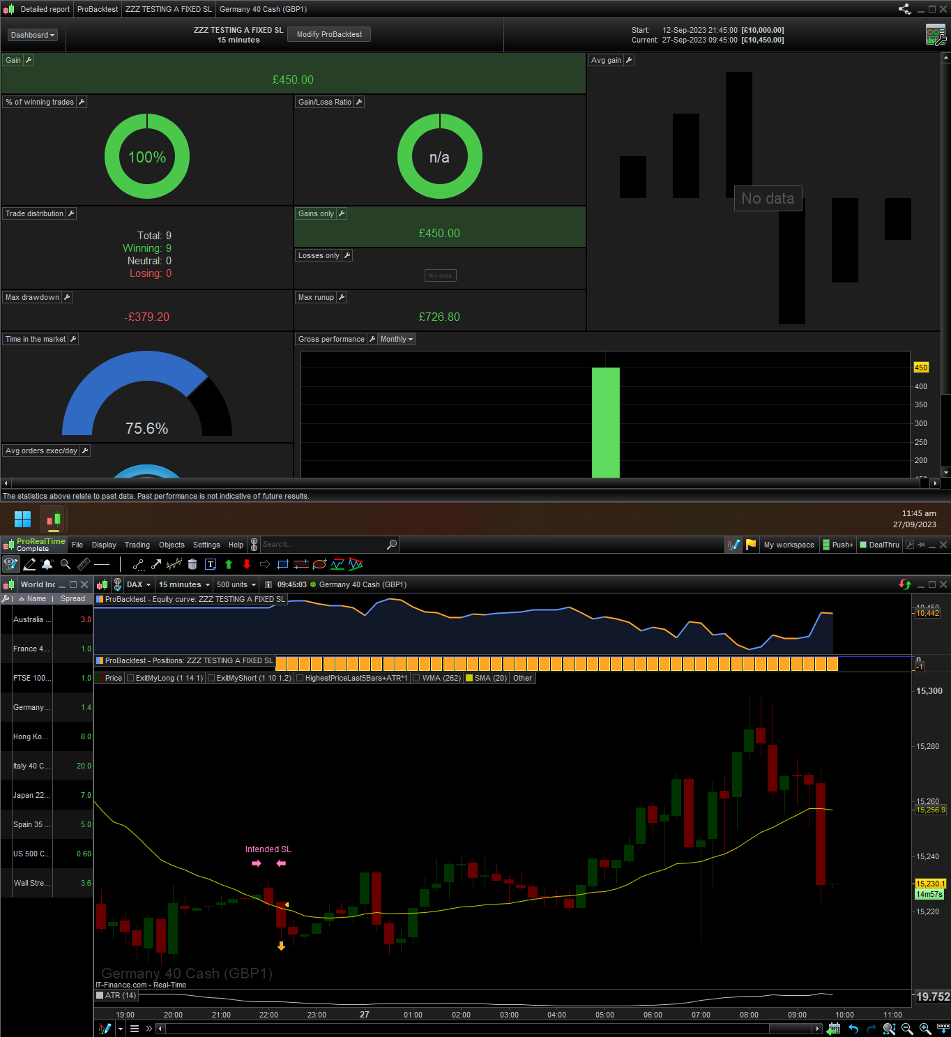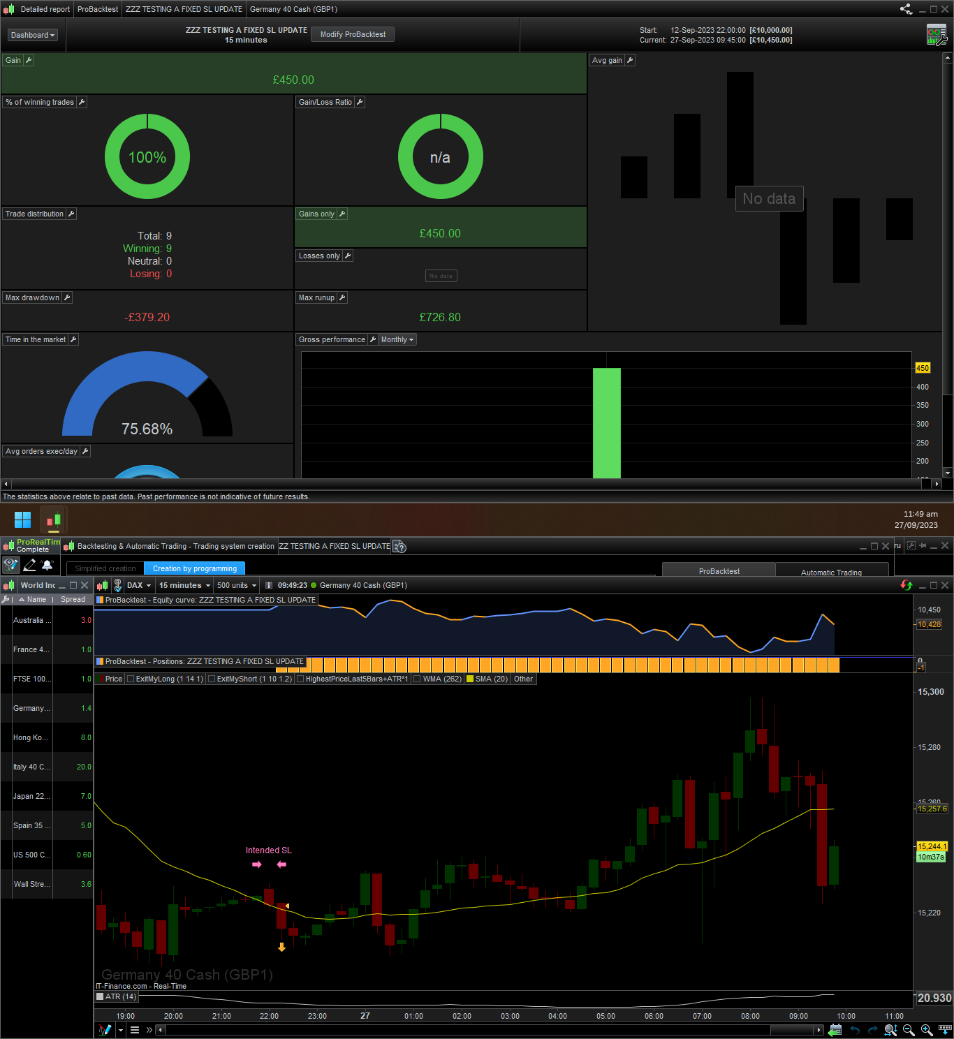 I’ve added the following screenshots with results where a trade is triggered and where a stop should be placed: