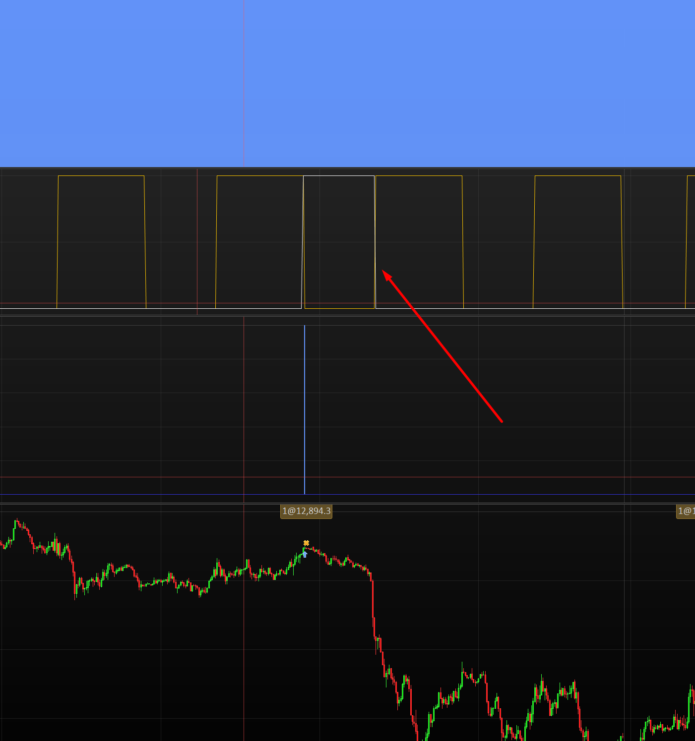 Est-ce normal ? J’utilise CROSSES OVER/UNDER en instantané, donc le trade doit s’ouvrir au début de la bougie suivante. Ça marche parfaitement durant la période de trade.