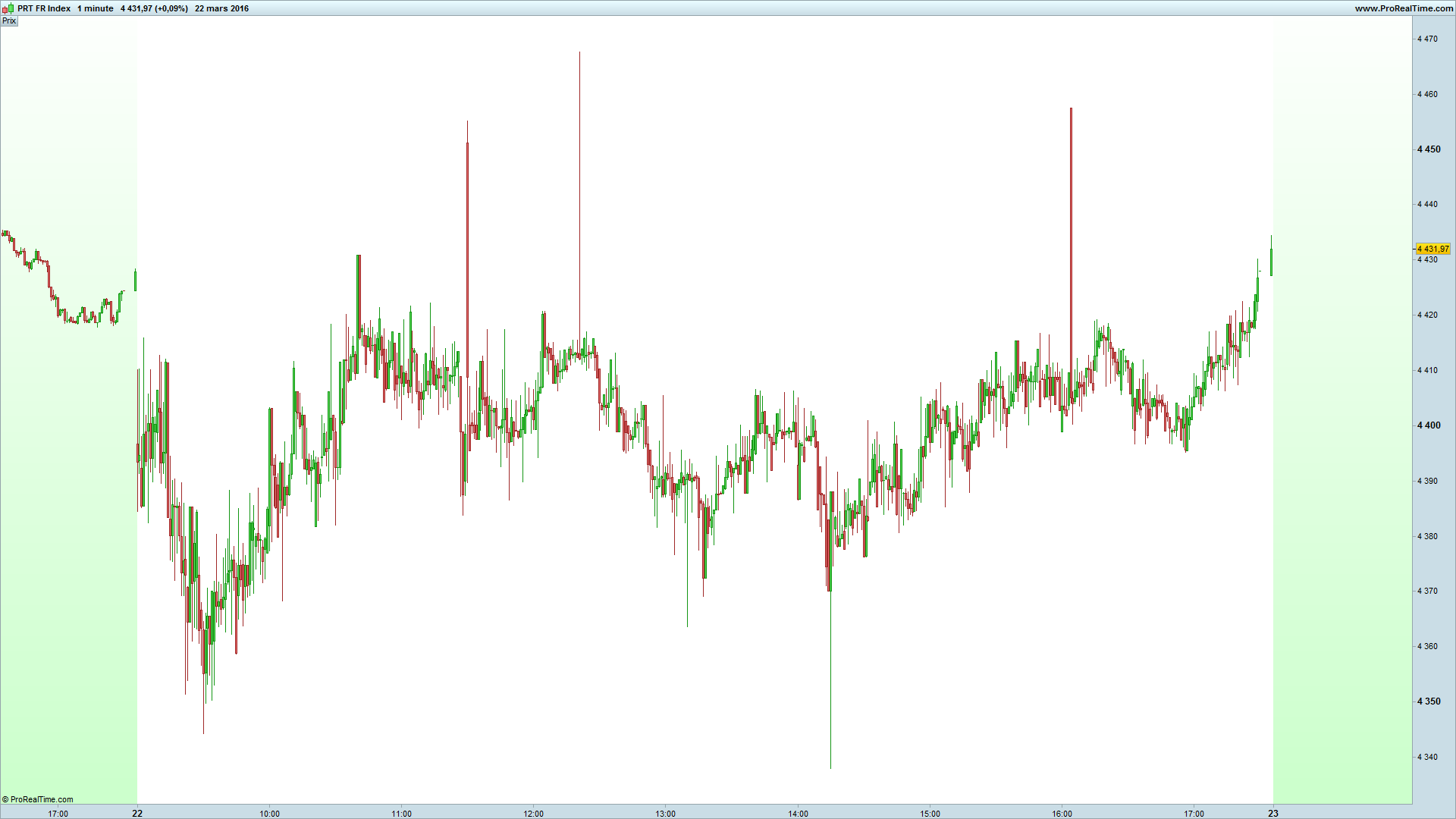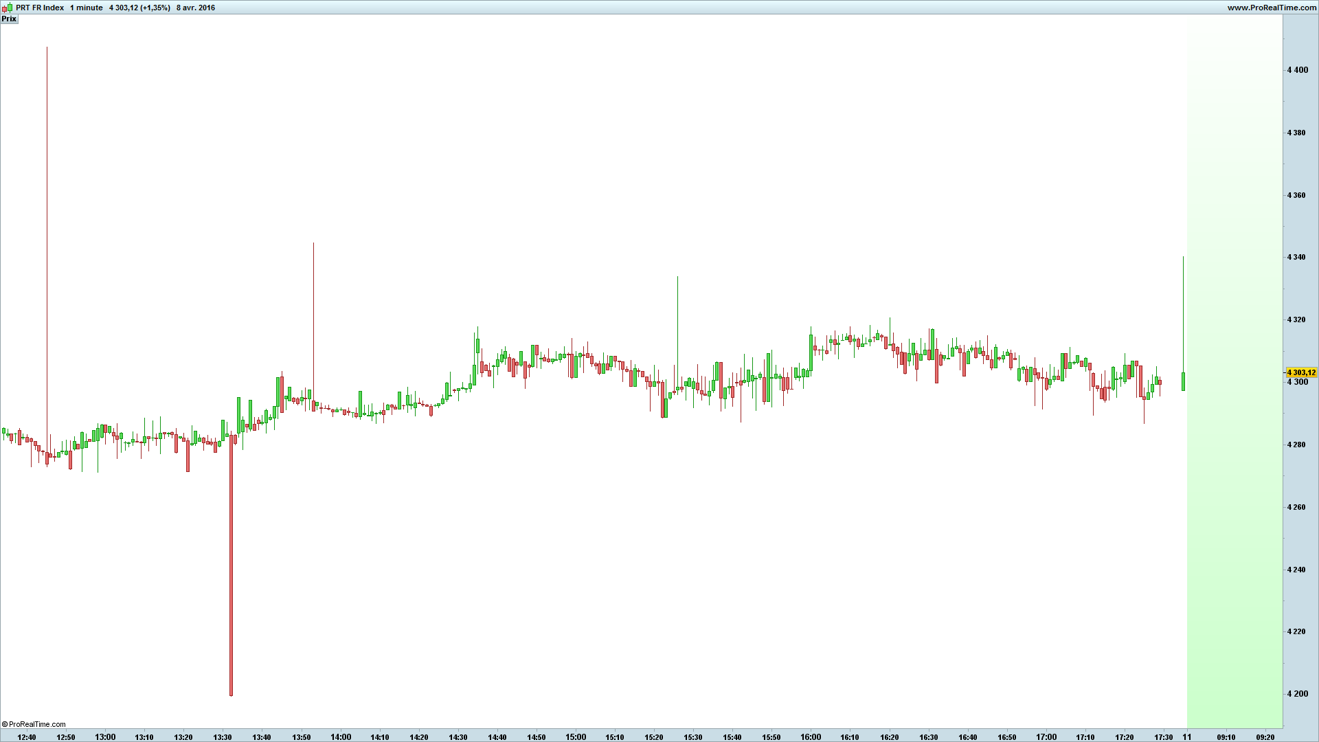 Hier je n’étais pas devant les écrans, mais je vois ce matin que j’ai un un flux erratique sur PRT (payant) avec le FRIDX en 1 mn avec de très grandes mèches illogiques