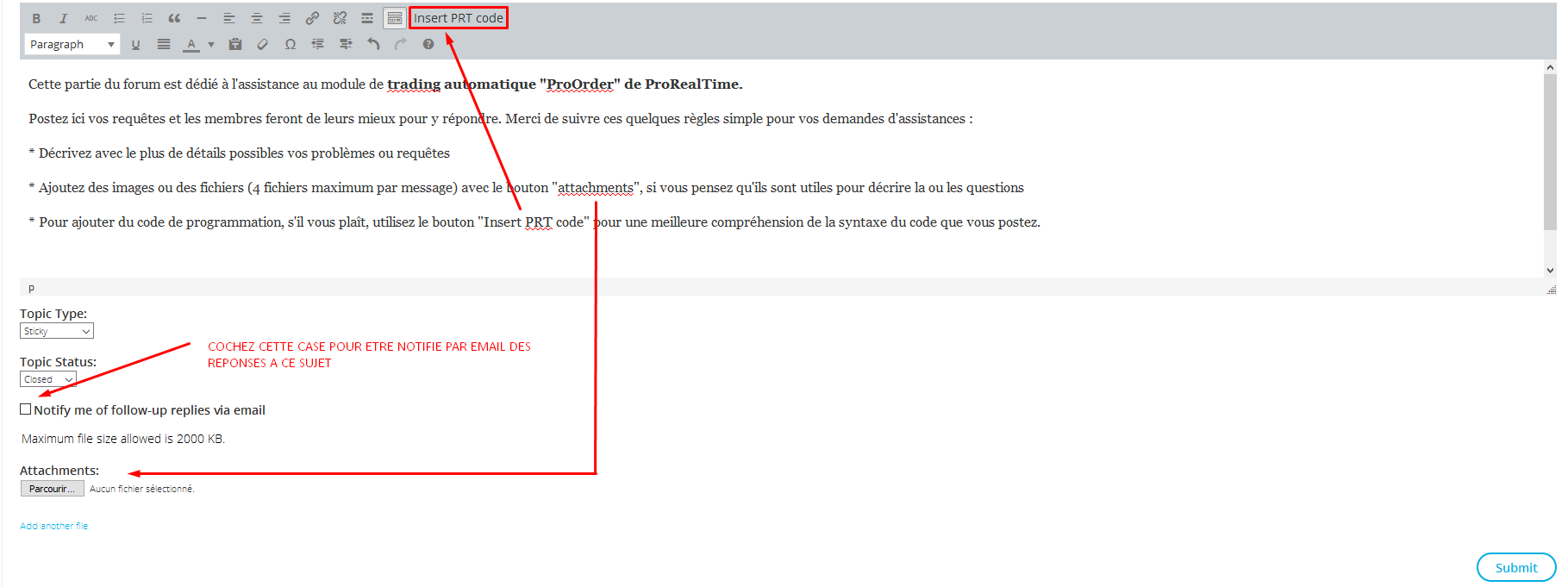 Zilliq, tu peux ajouter une image avec le bouton “Attachments” en dessous de l’éditeur de texte :