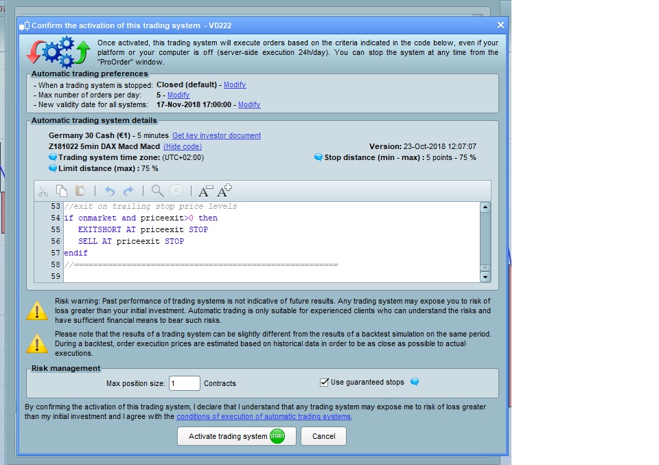 Pro Real Time offers the opportunity to set a auto trading stop live with a garantueed stops, see attachet JPEG file, see the tickbox “Use garantueed Stops”