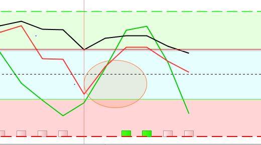 Nicolas, c’est moi qui doit mal m’exprimer! Le but de ce graphique est de trouver des synchronisations entre les stoschatic de différentes échelles temps. Lorsqu’ils se “syncronisent” le mouvement haussier ou baisser est porteur car les grandes périodes se mettent d’accord. C’est pourquoi j’ai cherché à me créer un indicateur “Baton” qui me relèvent ces synchronisations. Sur la pièce jointe que j’ai partagé on remarque graphiquement que les STO du 1h et 2h ( entouré en rouge) se sont synchronisés et pourtant le programme bâton ne l’a pas relevé. J’ai donc cherché à savoir pourquoi, et si l’erreur ne venait pas plutôt du programme créé.
