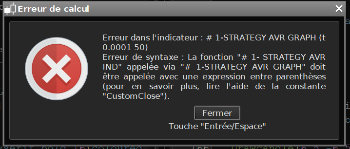 Ci-joint la capture d’écran du message d’erreur : “Erreur de syntaxe …. la fonction “…call…” doit être appelée avec une expression entre parenthèses, pour en savoir plus, lire l’aide de la constante “CustomClose””