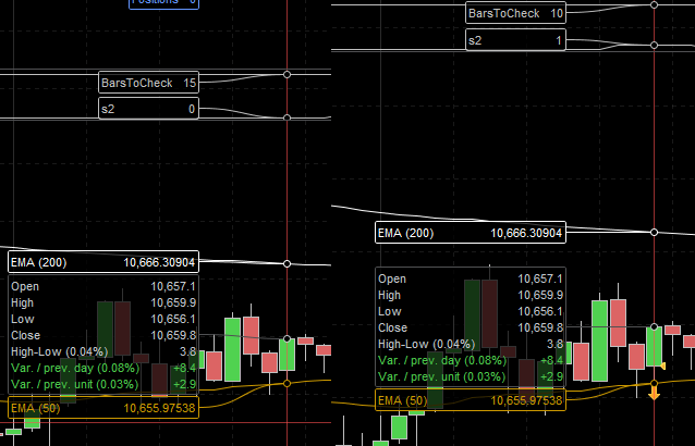 I have come across this a few times on different occasions but couldnt work out why code was failing, this time around I “graph” the variables so I could check them on each candle. So what I am seeing is that when “BarsToCheck” is set to 10 the IF statement is found to be true and the code goes on to set s2 to TRUE, however if I then set BarsToCheck to 15 to include more candles it finds the IF statement to be false and not run the rest of the code?