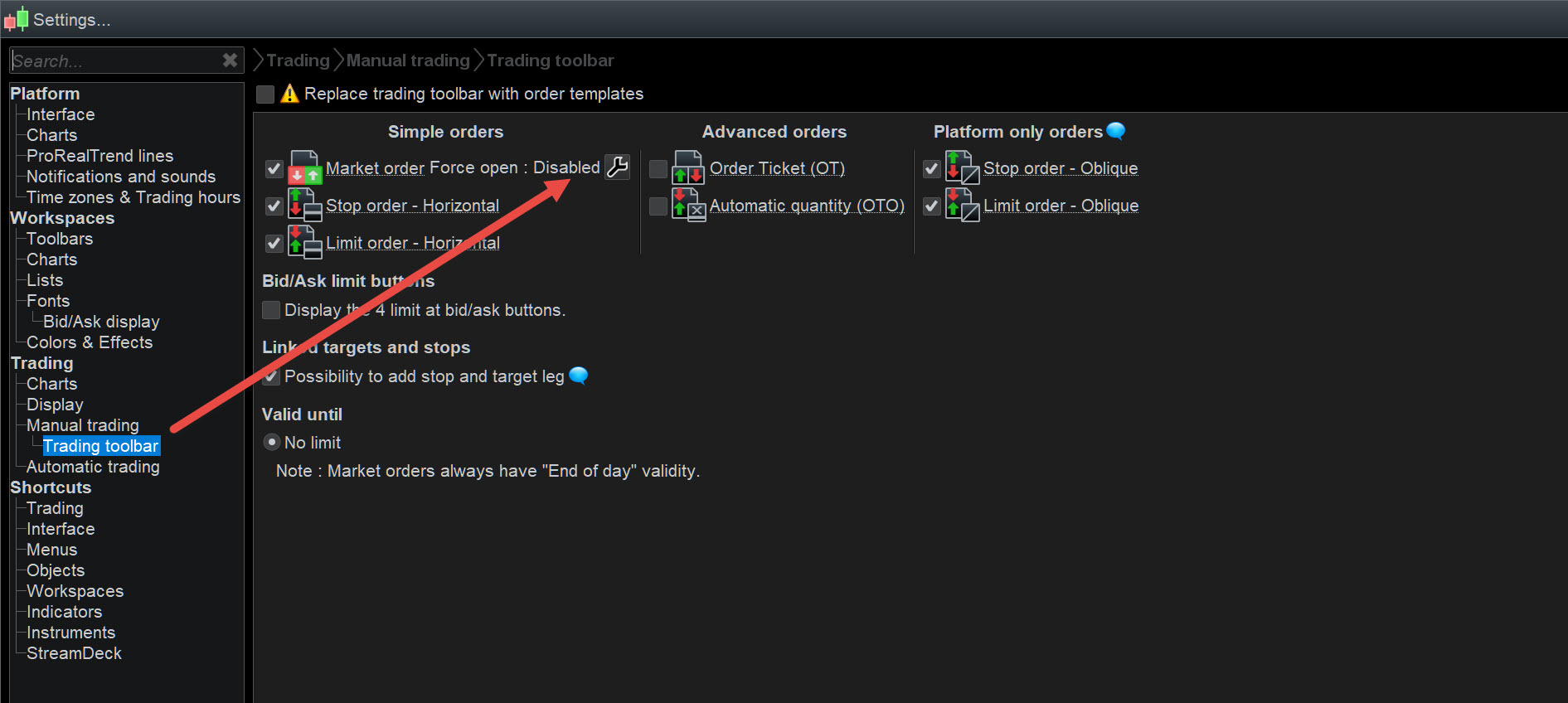 I have enable and disabled it from the ‘spanner’ in th eorder window but it just opens an order in the opposite direction?