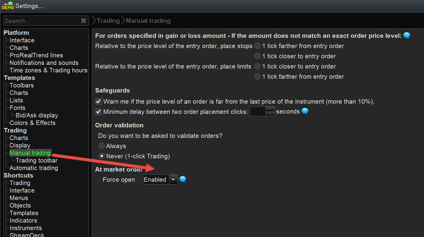 Wie kann man auf der Plattform bzw App die Funktion Saldierung/Force Open fest und immer auf Force Open einstellen?