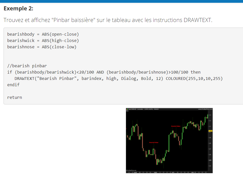 Je suis donc arrivé à chercher des infos sur le PIN BAR         et j’ai trouvé ceci sur  Prorealcode