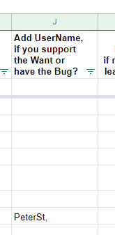 If you recognize the Bug or Want entry, please add your forum name in the rightmost column. This is not a must per se, but it could emphasize the importance of the issue.