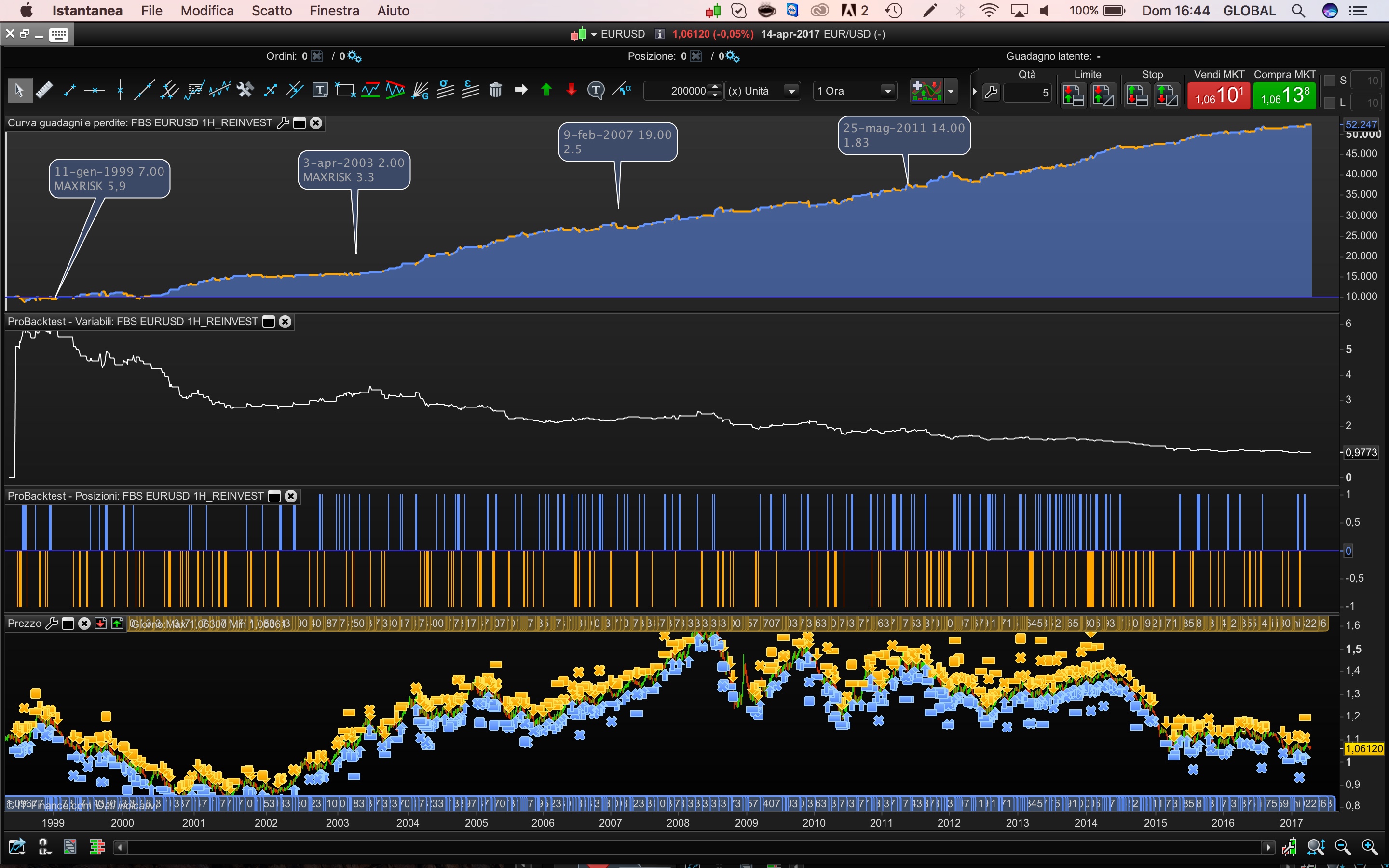 Hi Ale, that is just crazy numbers 🙂 I don’t have the premium version- but for 1 H data back to 1999, that is a valid test. I would like to help optimize but the data I have is only back to Jan. 2013 Please add this Graph code- to see how much you are risking at each trade.