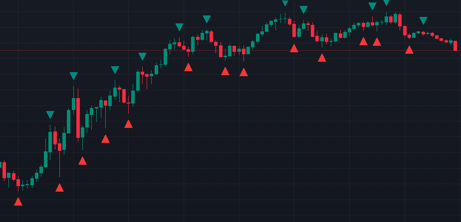 DrawArrowDown(BarIndex-2,High[2])Coloured("Green")