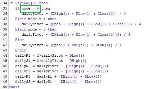 dailyPivot = (DHigh(1) + DLow(1) + Close[1]*2) / 4