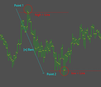 1.) how can I get the price or the intraday bar index back from point 1 and / or point 2 (such as TradeIndex or TradePrice).