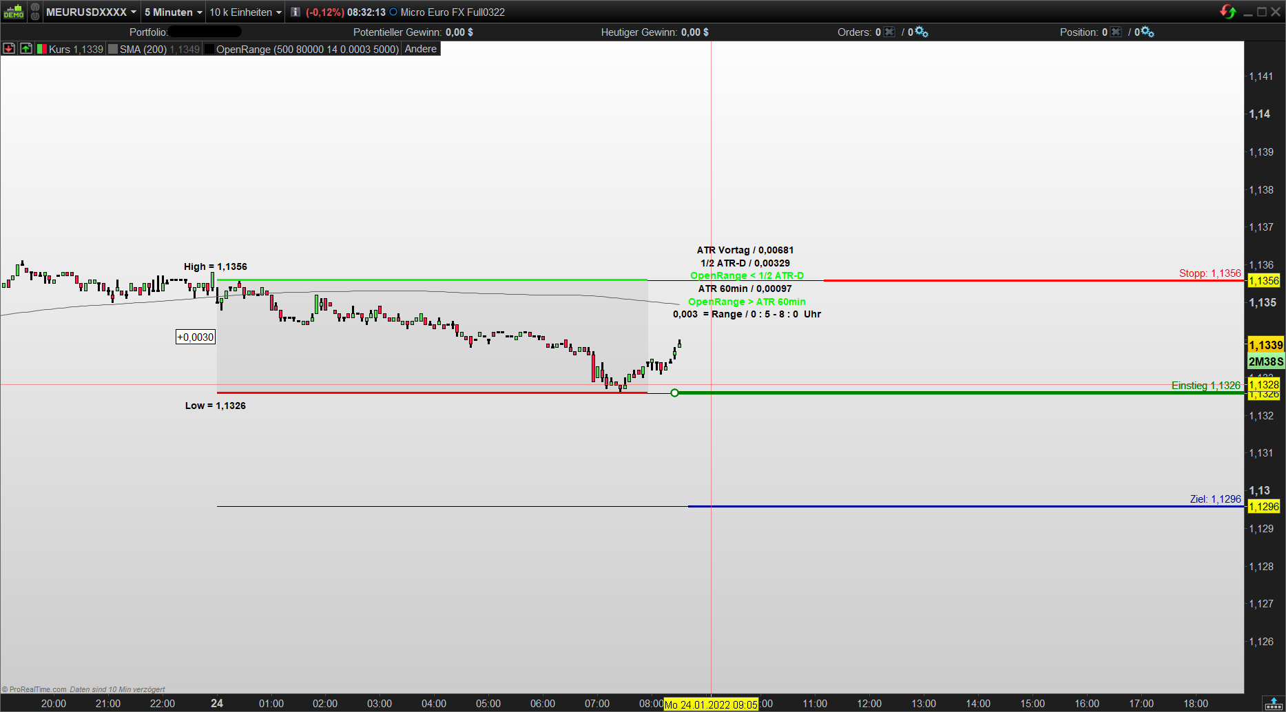 Open Range Indikator im Chart