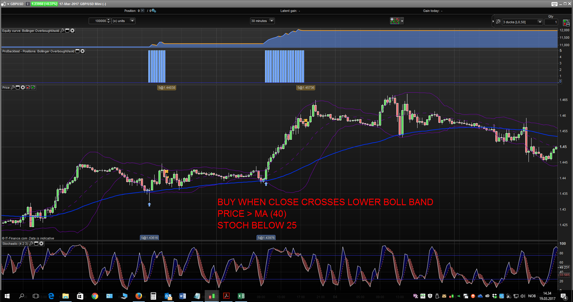 Thinking… Looking at the equity curve, it looks like it’s not that many trades, and further filtering may rule out too many. More optimalization would not be a smart thing to do either, I feel a bit puzzled about where to go next…. Maybe exchange the Stoch with something else. Suggestions? 🙂