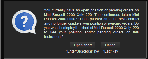 Removing XXXX all together seems a waste of this effort. To me it looks like the best idea to just not replace the e.g. XXXX1220 with the XXXX0321 version. Just let it be, let the popups be and maybe … just maybe change the message with the blue Question Mark (first attachment) into one which lets you choose the new XXXX contract (0321) in a new window. Now I can (gradually) close the old contract and obtain a new position in the new contract. When done, I will replace the old (chart) contract with the new one.