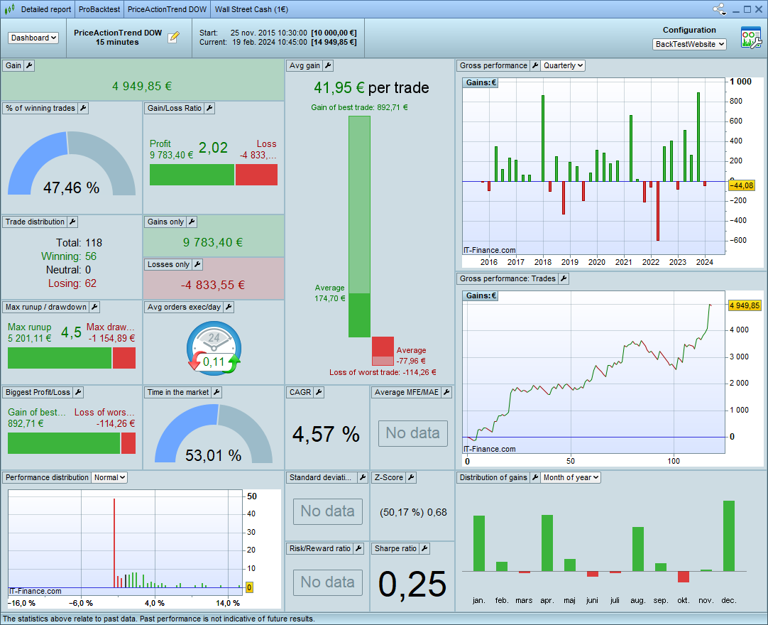 The 4 algos run on 3 different markets (SP500, DOW, and US100) and all run on the 15 minute timeframe.