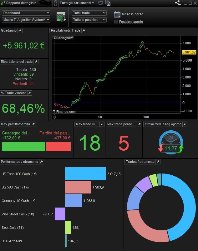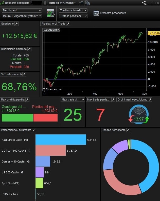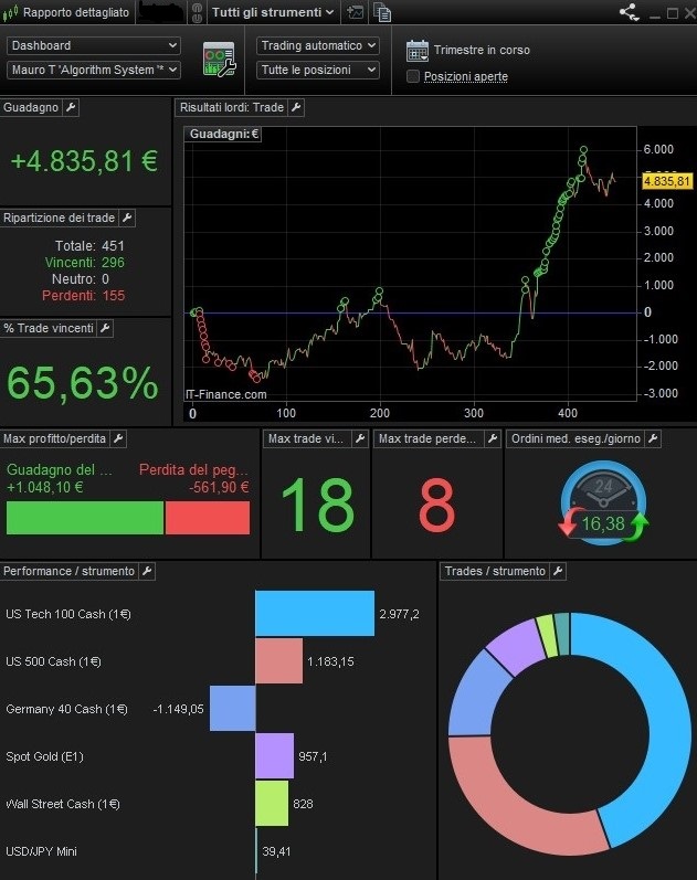In trading all tells nothing when looked at in the short term. But what period to look at then ? I coincidentally could use the “start of autotrading for IB”. But then again it does not tell nothing much really because in January I had maybe 3 or 4 different instruments running with AutoTrading, while right now it is 13 (all different because it’s IB). New Instruments and Systems (algos) are always under trial. They always fail at first. This is all incorporated. Want to see it ? look at the 2nd picture. Same account, now showing from Jan 4, 2023. You could say that is all misery, but it is all trial and error. The same happens today still. But today it is in the mid of now working systems. 3 of them still fail. They are in for observation, but they fail and lose money. Fail means : a. unexpected broker issues and b. not the best strategy after all.