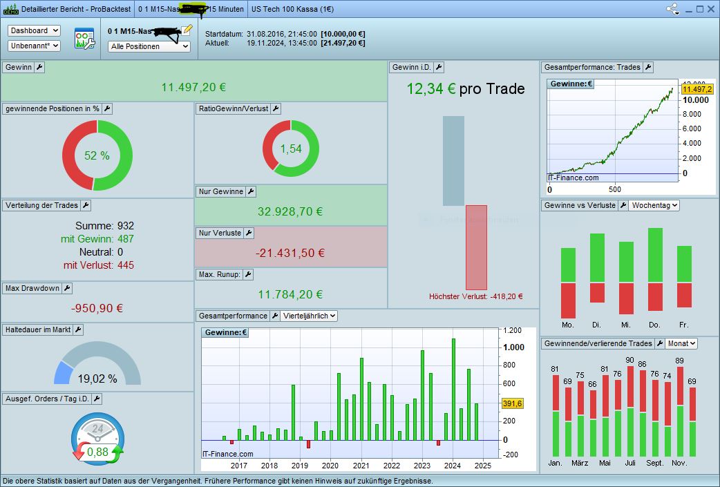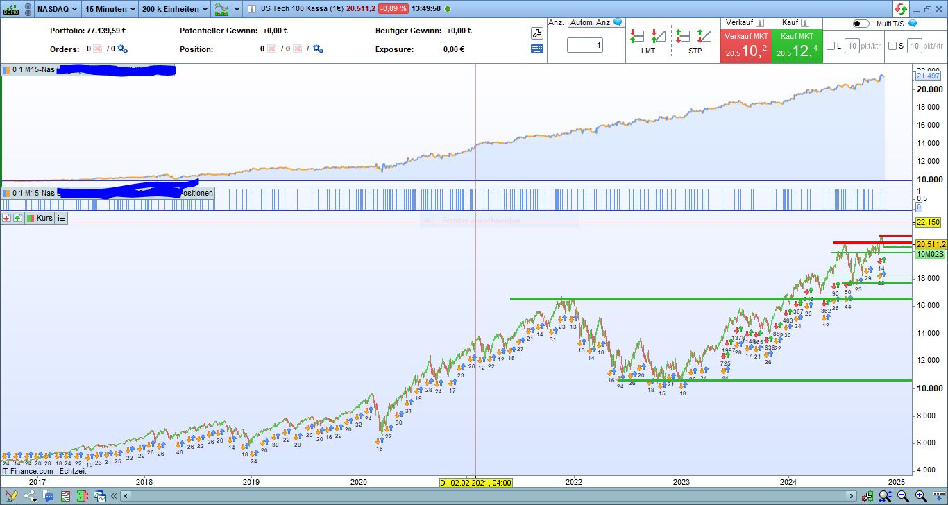 as we are approaching end of this year I will post some data from my „model account“ (trading DAX only): behind there is a portfolio of 11 algos, 6 long and 5 short, which I run with 10k EUR live on CFDs, almost no changes since more than 2 years on those algos, all earnings when exceeding certain amount above 10k I am withdrawing from this account, so periodically bringing equity down to 10k and keeping position sizes for each algo stable (as % of those 10k). this account is a „model“ in these terms: