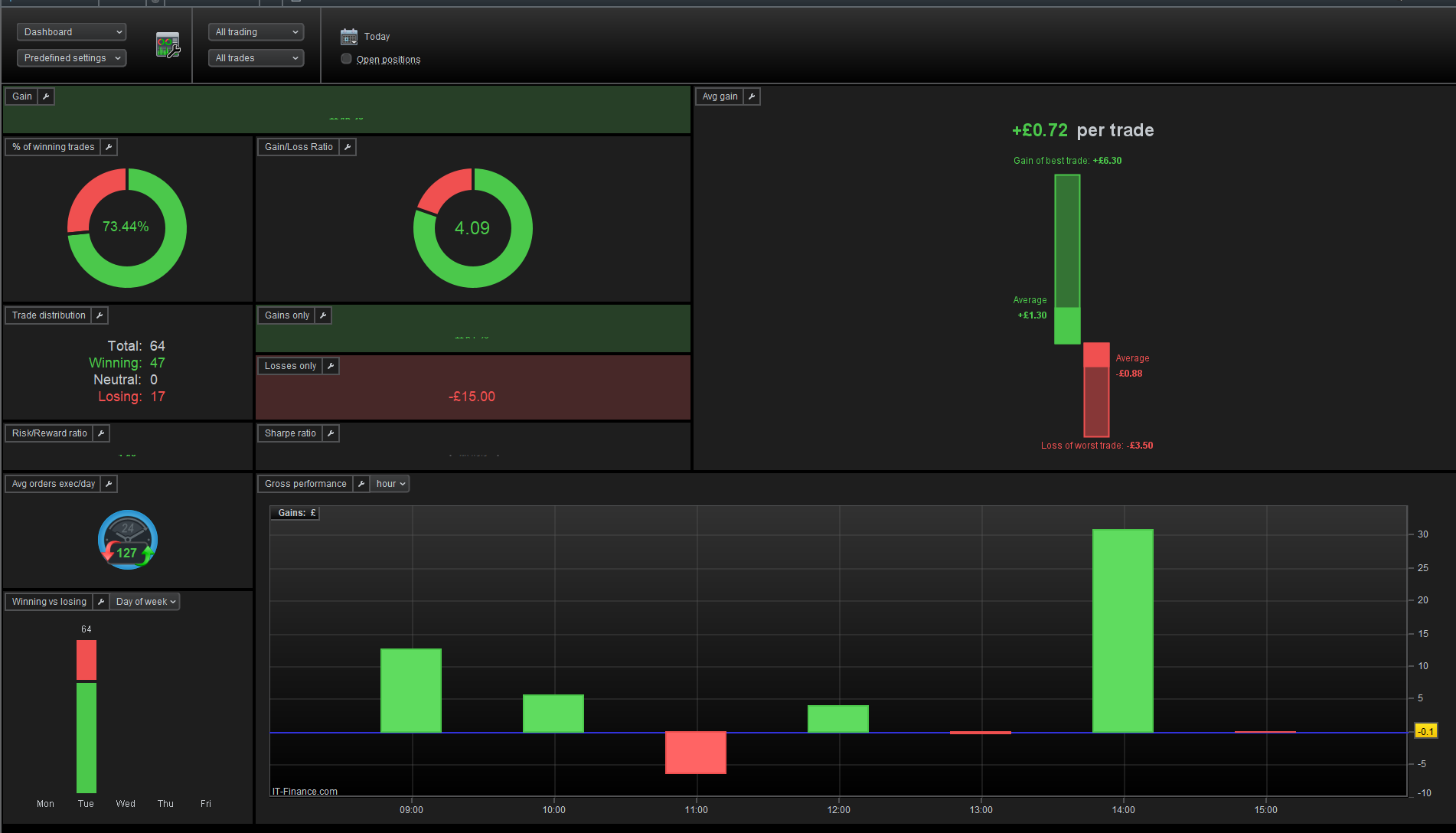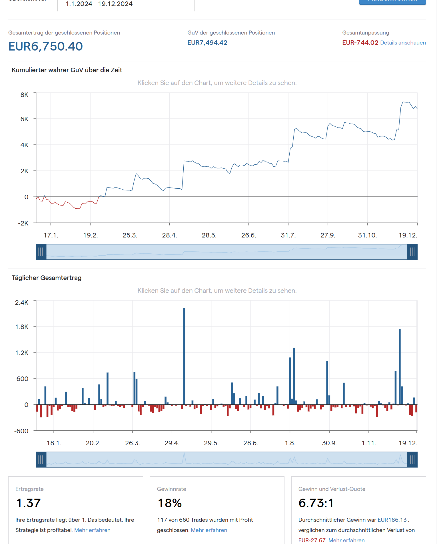 Even it’s not a 100% proof, I am attaching as „proof“ the printscreen from IG platform with real results of that „model account“, where you can detect equity curve and some more details as well. Maybe funny one – especially for those chasing win-rates of 70% 80% 90%: my „win-rate“ is only 18%, so only 117 out of total 660 trades this year were closed with profit.