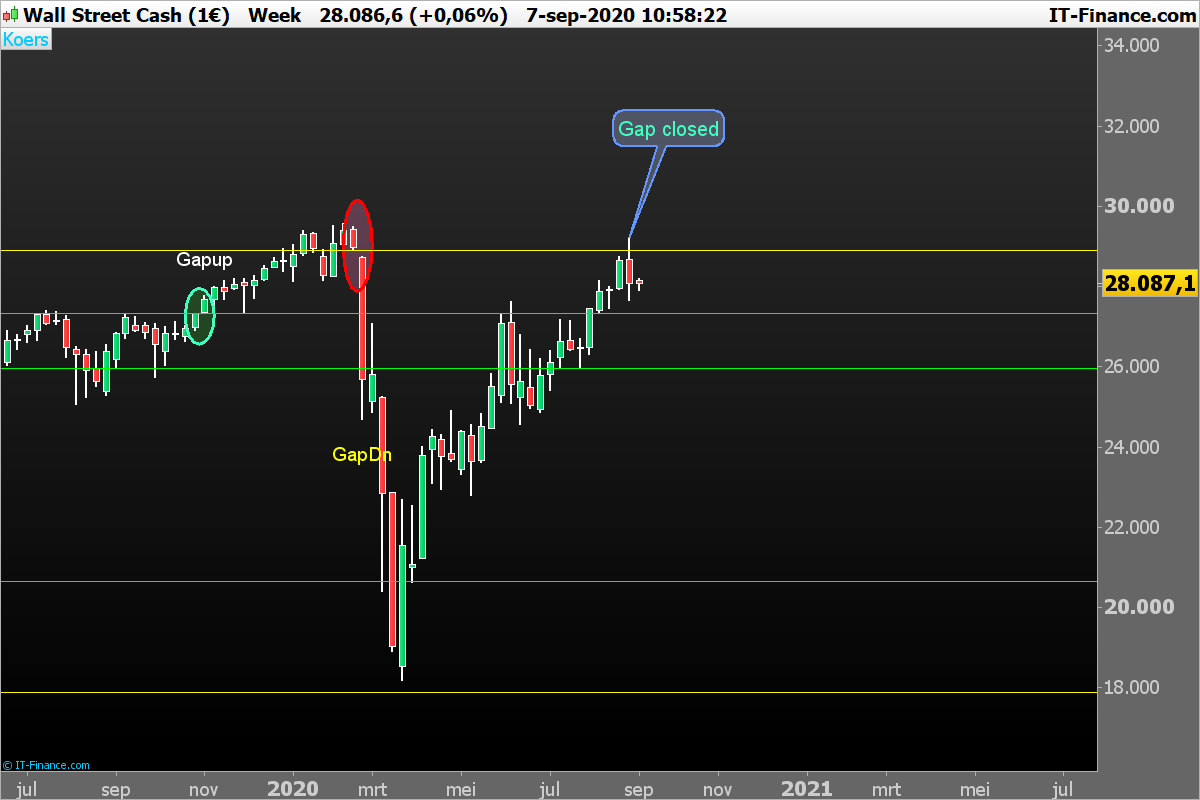 Its only my opinion, but I think that everyone knows what a gap is? What I want to say, with the examples, is that the distance between the gap and the Highest high or the lowest low, can be as much as 100 points, before closing the gap. Only on this small TF.