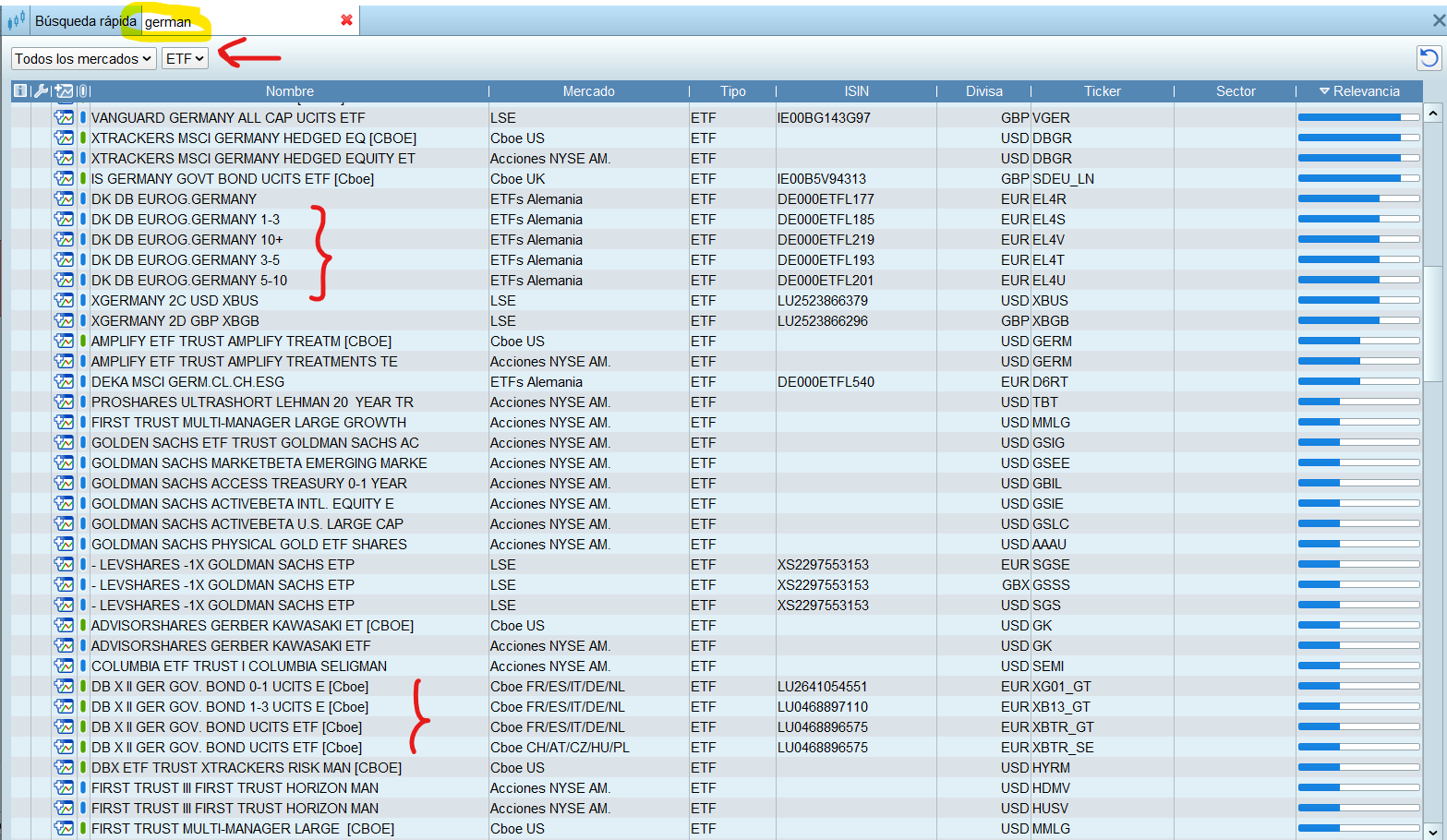 Just go to search window and write “german” and select ETF. You will find a lot of assets.