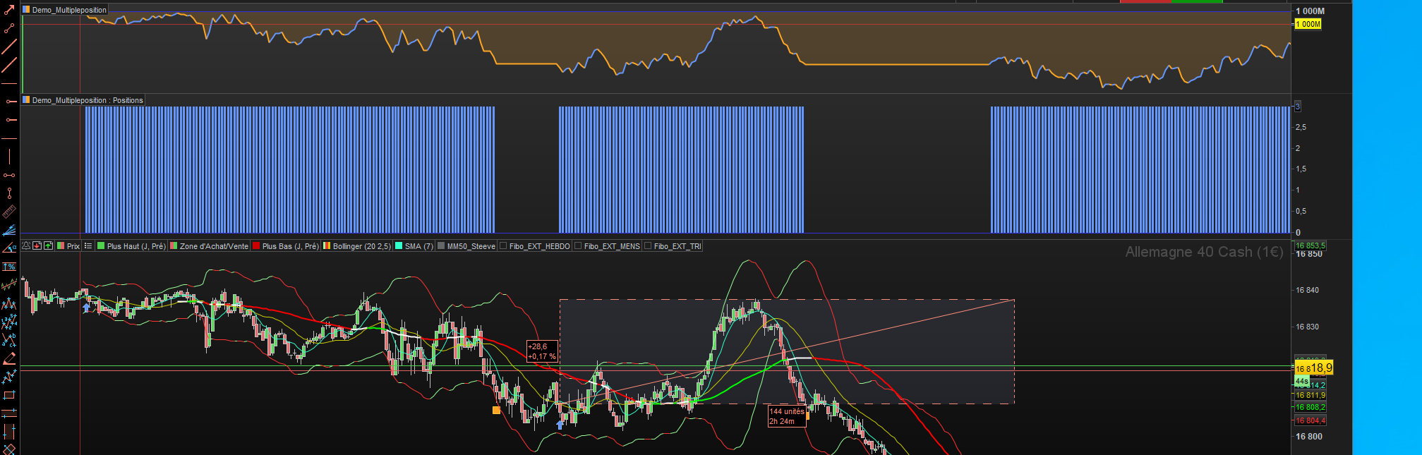 - L’algo prend une position à la vente dans l’exemple le dax à 16 588 , on l’appelle pos1