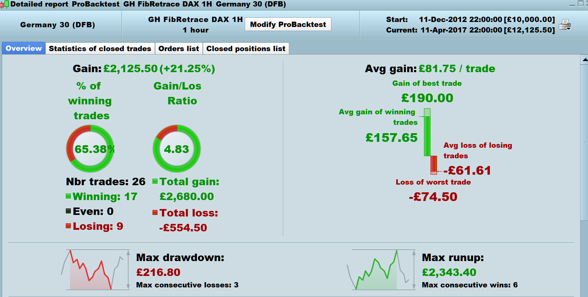 Backtest results shown are Spreadbet (@ £1 per point) with a 2 point spread.