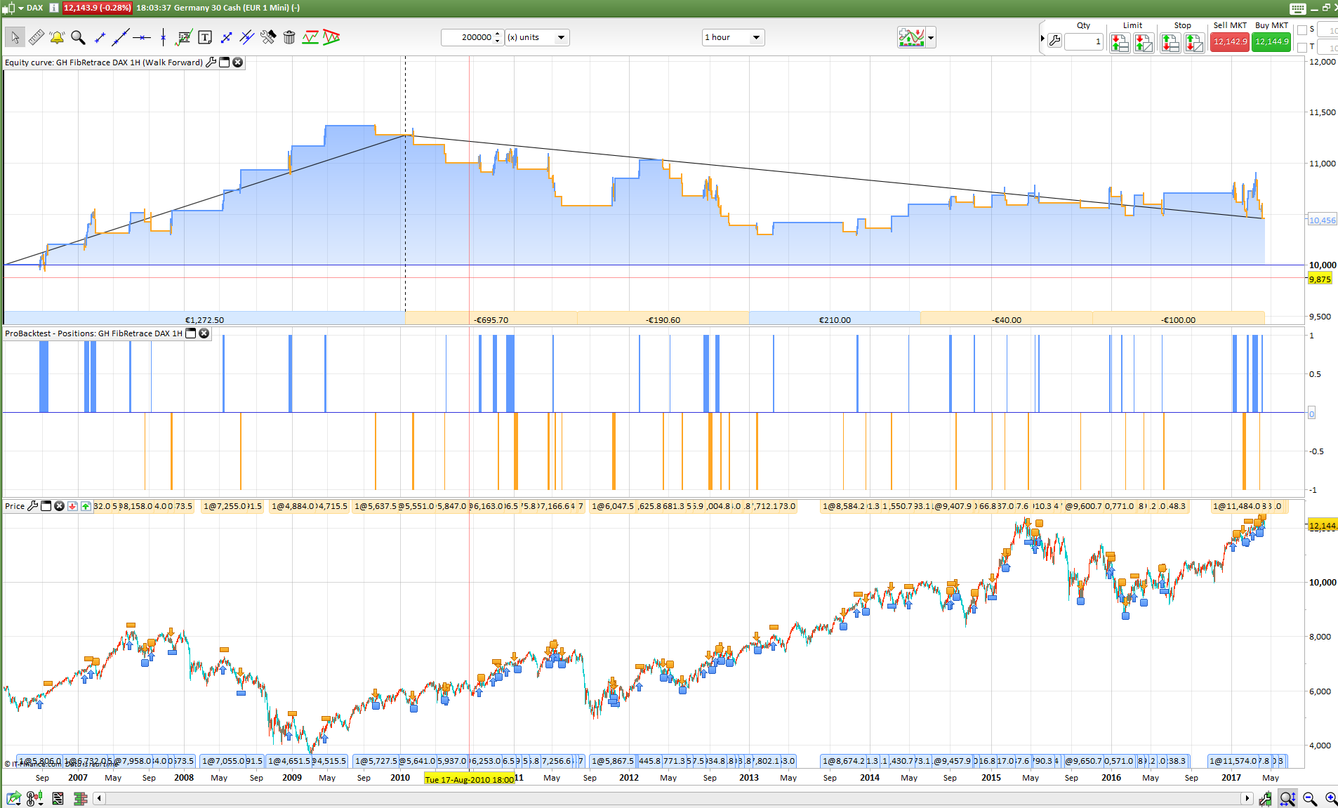 //Fibonacci 61.8% Retrace Auto-System for DAX 1 Hour