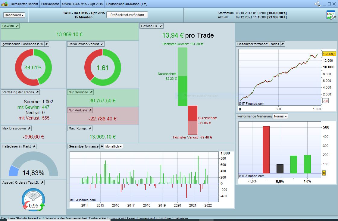Bonjour, j’avais acheté l’algo “Dax Swing M15” avec lui à cette époque … L’original de 2015 génère continuellement des bénéfices. Bien que le taux de frappe soit d’environ 40%. La mise à jour 2020 … 2021 … et 2021/2 sont toutes trop optimisées à mon avis. Bien que je puisse apprendre beaucoup du code et que je pourrais l’utiliser par exemple sur NASDAQ ou SP500. Les stratégies de swing gratuites sont bien utilisables manuellement. Même si les idées sont répandues sur le net. Juste mon avis.