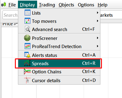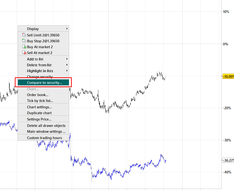 - Spread chart (CTRL + R), da cui puoi confrontare con un altro strumento con qualsiasi simbolo matematico: meno, più, divide, moltiplica.